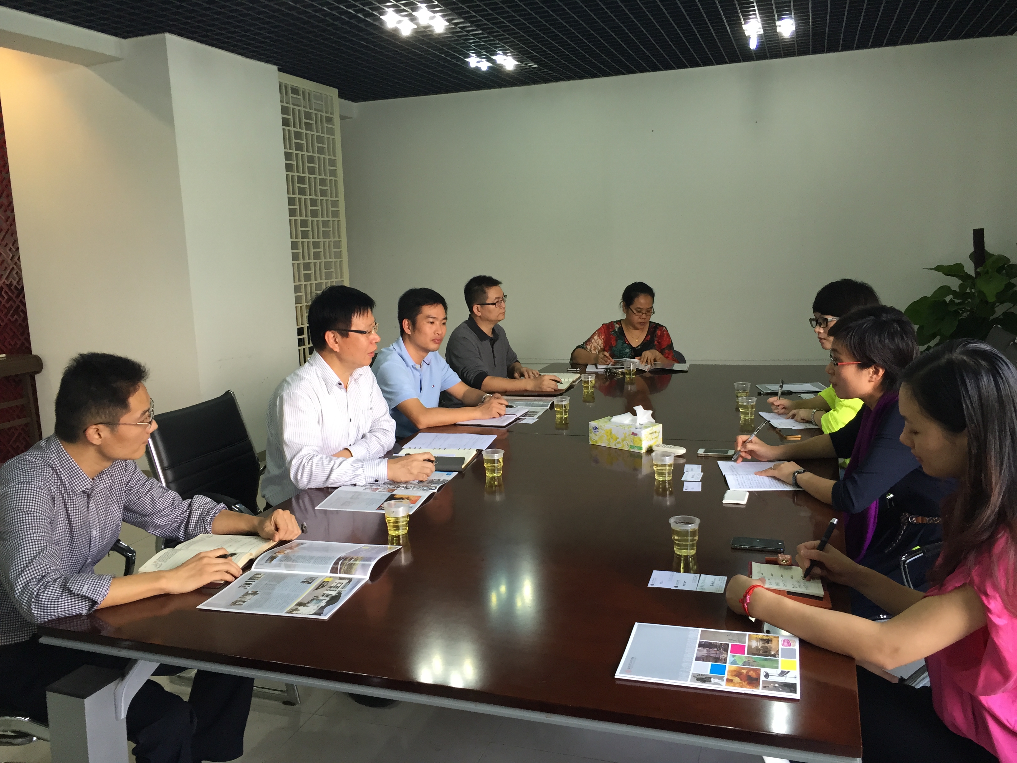 在广东工业大学艺术设计学院交流学习。受到该院党委书记黄学茭、副院长蒋雯、副书记蒙裕兴及团委书记、辅导员等的热情接待。该院拥有工业设计与创意产品的二级学科博士点和硕士点、设计学一级学科硕士点、绘画创作与理论二级学科硕士点和工业设计工程硕士点。全院博士、硕士、本科生4000余人,教职工120余人,是中国大陆加入世界艺术、设计与媒体院校联盟的十所院校之一。该院的办学特色和亮点在于:一是平台建设卓有成效,广东华南工业设计院是该院建立的全国最早的设计产学研平台,东莞华南设计创新院是全国最大的设计产学研平台,由东莞市政府与该校共建,广东省工业设计集成创新工程技术研究中心、广东省教育厅电子产品工业设计工程技术研究中心、工业设计集成创新科研团队、工业设计与技术集成国际协同创新中心等是该院牵头建立的各类团队平台;二是艺术与工业、技术、科技紧密结合;三是国家化办学特色,学院聘请国际知名教授(占10%)加入师资队伍,国际教授打破专业界限,聘请行业精英来院授课。学院对国际教授配备大师工作室,大师工作室内含先进的现代创意设计全球远程交流与研讨系统、先进的实验设备、经典产品与设计资料展示空间等,集授课、研讨、交流和产品研发于一体。交流学习组一行特地考察了该院的创新工作室。