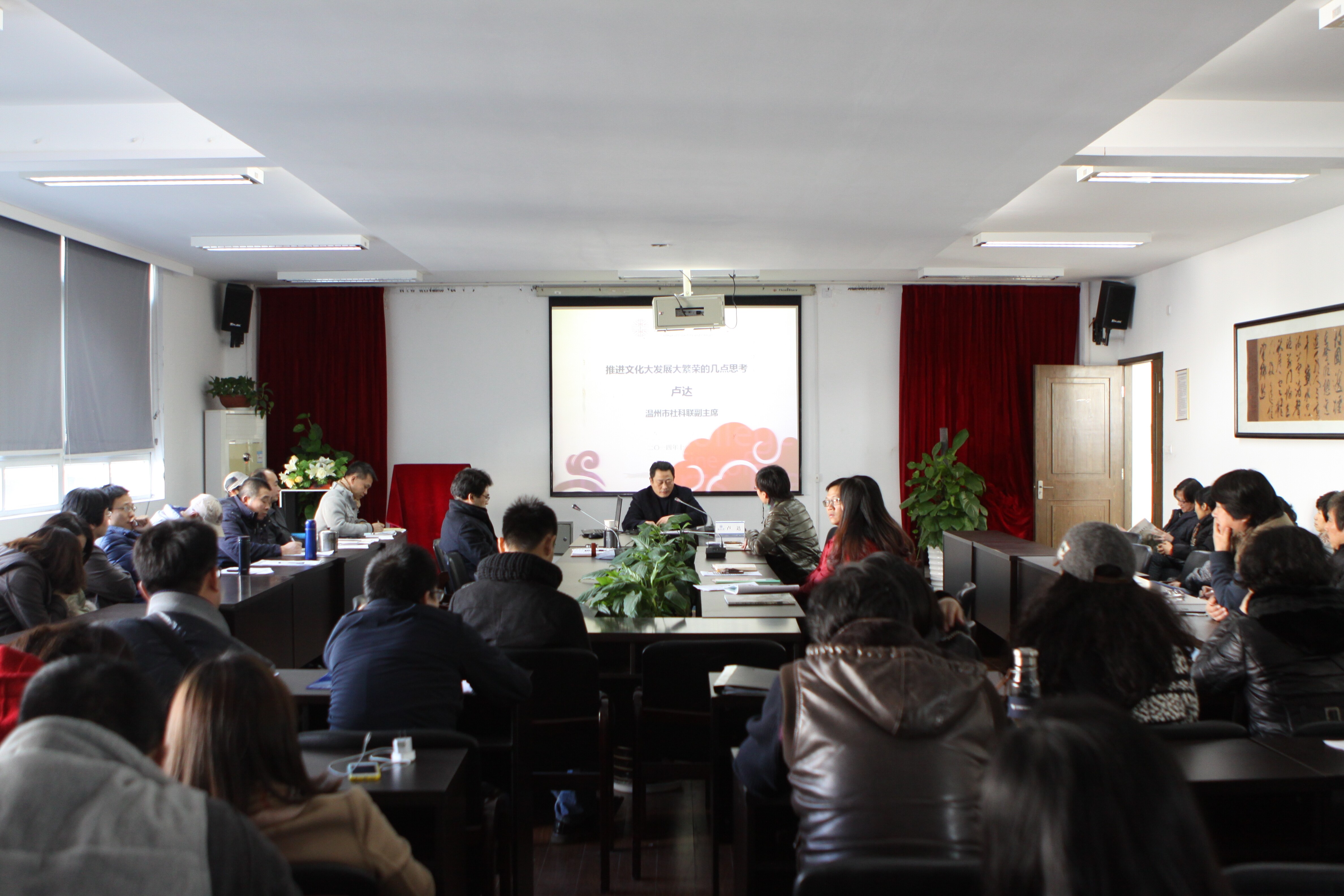 12月18日下午14:00,努努影院 特邀温州市社科联副主席卢达为努努影院 全体教职工做了主题为“推进文化大发展大繁荣的几点思考”的专题讲座。