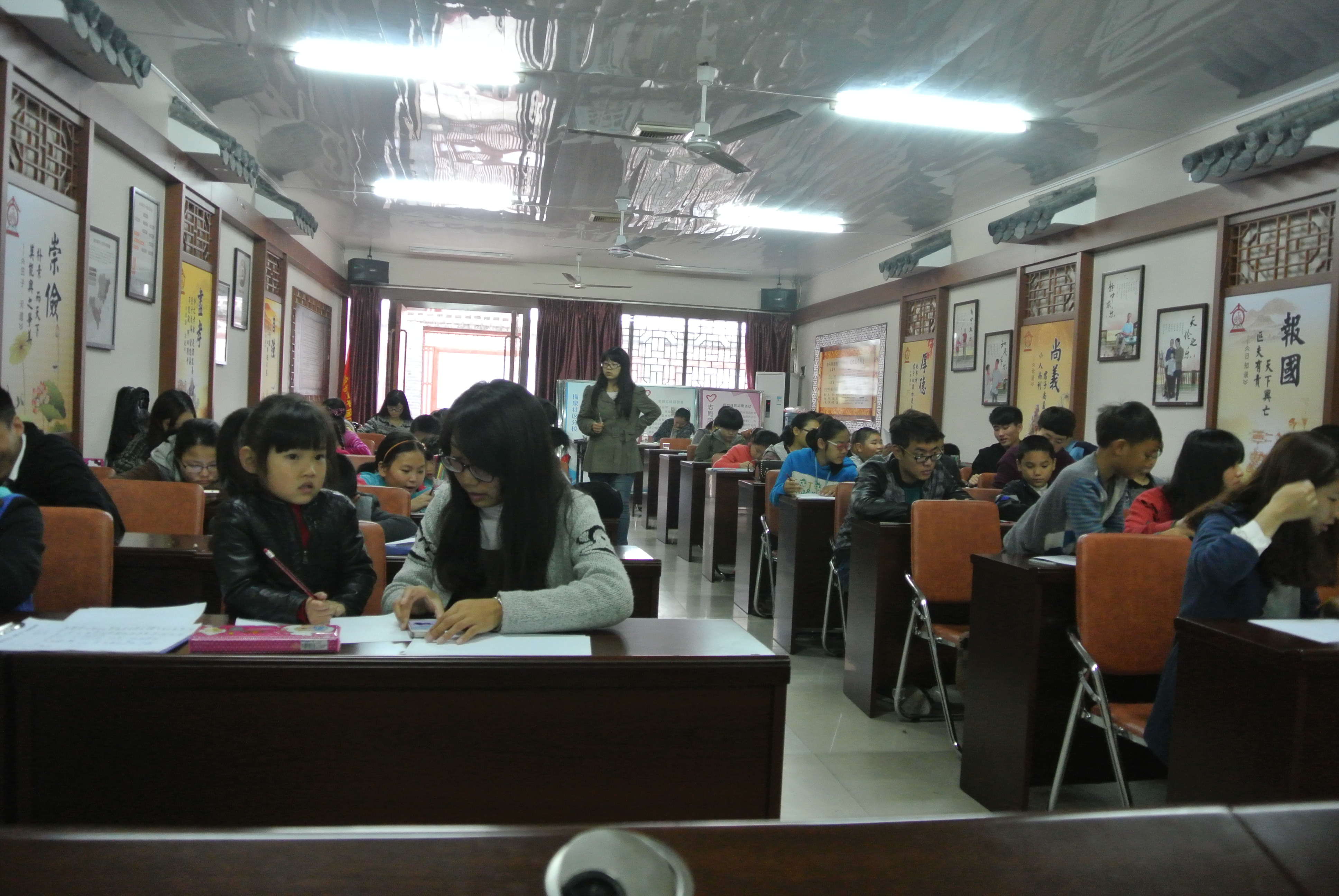 11月28日,天空下着蒙蒙细雨。我院“艺家人”青年志愿者协会梅泉支教小队的志愿者们在梅泉社区进行一对一的支教活动。 上午8点30分,志愿者们来到了这个充满朝气的地方。此次支教活动的主题是“插上梦想的翅膀”。每个孩子都对自己将学的内容充满了热情,十分活跃,班级里充满了笑声与回答的声音。小朋友们先在放映的PPT中挑选了自己想学、想画的哆啦A梦人物,紧接着开始投入在画中。当小朋友遇到难题时就会请教身边的小老师,志愿者们也耐心地指导,手把手地教学,整个教室弥漫着浓重的学习氛围。 这次支教活动不但让小朋友学到了作画技巧,也开发了他们的创新思维,同时也让志愿者从中感受到创新与梦想的重要性。