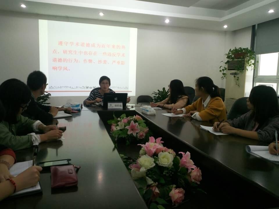 随后,郑书记凭借指导研究生的丰富经验,结合着国内外著名的学术腐败案件,列出了研究生学术道德可能存在的问题:抄袭剽窃他人的研究成果 、科研中不做深入细致的调查研究工作,伪造和修改实验数据以及一稿两投或两发等。她着重指出:学术道德和学术腐败是一件事物的两面,导师不应该成为研究生的“道德保姆”,庇佑研究生违反学术道德。学术造假也许能得逞于一时,但最终都经不住时间的考验,都将或早或晚地败露于世,到头来害的还是自己。因此,尊重学术道德是最高限度地保护自己。