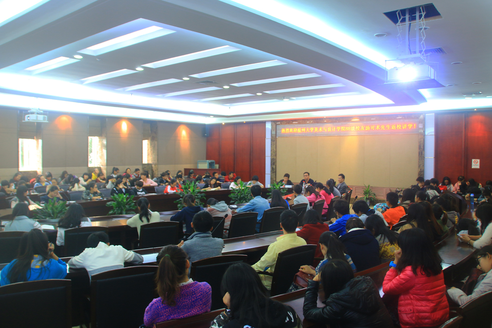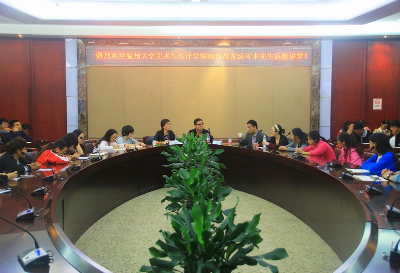 11月12日下午,努努影院 校友论坛在岩松堂白鹿厅举行,温州铂尔曼酒店董事、温州奥嘉国际酒店管理有限公司总经理、美院88级校友汤可术先生应邀主讲,发展联络处(校友办)处长周伟国、院党总支书记郑彩莲莅临讲座现场,由郑彩莲书记主持论坛。美院师生慕名前往听讲,全场座无虚席。 讲座开始前,郑彩莲书记对汤可术的创业经历、人生成就做了简单的介绍,并对他的到来表示由衷的期待和热烈欢迎。接着,汤可术先生为美院师生们带来了一场内容丰富、思想深刻的讲座——“汤可术与他的三个愿望”。 他从自己的三个愿望切入主题,即开一个贯有自己艺术理念的五星级酒店,在经济实力允许并且对自己的人生有一定感悟时拍一部电影,在晚年时期写一部自传体回顾自己的一生。接着,他带我们走进了他的大学时光。那个物质贫瘠、社会动乱的时代所折射出的青年人热血澎湃、激情燃烧的情怀在他的大学时代里表现得漓淋尽致。一是对自由的渴望,使他感受到有无穷的力量去施展,让他激情地面对生活,尽情过好每一天,去活出意义、活出价值;二是对艺术的钟爱,使他执着地去追梦、去奋斗、去坚持;三是革命思潮的影响,使他认识到想要成功首先要有独立生存的意识,其次要有胆识,最后要抓住机遇。他告诉同学们“人学了艺术,人生会变得有意思”,希望同学们把握好自己的专业特长,学会用专业去养活自己,用专业去奉献社会;更要珍惜现代社会的物质条件,把握时代脉搏,别让青春沉溺于享受。 作为一个创业成功的学长,汤先生又给在座的学弟学妹们提出了一些建设性的要求和建议,例如要跨学科多元发展,做事情要富有责任心并且严谨等等。之后的现场互动环节中同学们积极主动地与汤先生交流,汤先生认真、详细、耐心地给同学们解答疑惑,各位同学都受益匪浅。 此次校友讲座让学生们对大学充满了希望,点燃了学生规划未来的激情,鼓舞了学生创业的斗志。 提问环节摘录: 学生:汤老师,您是如何看待“没有不狂妄的青春”这句话的? 汤可术:我理解的“狂妄”是“激情”、“尽情”,这当然是一位年轻学生必备的两种生活态度,对生活、对专业是要保持这样的热度。但是,凡事要有度,比如谈恋爱就不能到无法自拔的地步。 学生:汤先生您好,我是视觉传达专业的,我想问下这个专业的就业前景您怎么看? 汤可术:这是一个前景非常广阔的专业。但是,专业是招牌,关键看技术,你们要学会灵活熟练地运用各种相关软件,还要提高自己的鉴赏力和审美能力。 学生:我高中的时候特别喜欢写作,怎样才能坚持最初的梦想? 汤可术:在大学里,想做喜欢的事情很容易,因为你们很自由,有大把大把地时间去发展你们的业余爱好,然而在工作后,会有各种牵绊逐渐抹杀你们的兴趣。所以请好好把握大学的时光,发挥兴趣、发展特长,且在工作后,能让兴趣有能有惯性地延续,让它成为生活的一部分,这样最初的梦想便不会被遗忘。 学生:创业和学习哪个重要? 汤可术:毫无疑问,你们现在要以学习为重。要先把基本功打扎实,不但要学好专业知识,还要学好社会知识,社会阅历是创业最基础的东西。 ……