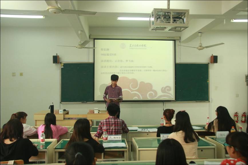 在这秋高气爽的十月,努努影院 迎来了第二届的新生演讲比赛。2014年10月22日,2014级新生演讲比赛初赛在2B2001举办。本次演讲的主题是“正青春,梦飞扬”,由美院团学学风纪检部承办。学生科辅导员陈赛慧老师、学生会副主席叶佳颖、上一届纪检部部长何瑶做为嘉宾出席本次会议,上一届新生演讲赛一二等奖获得者刘子媛、张昇、丁凯迪担任本次比赛评委。