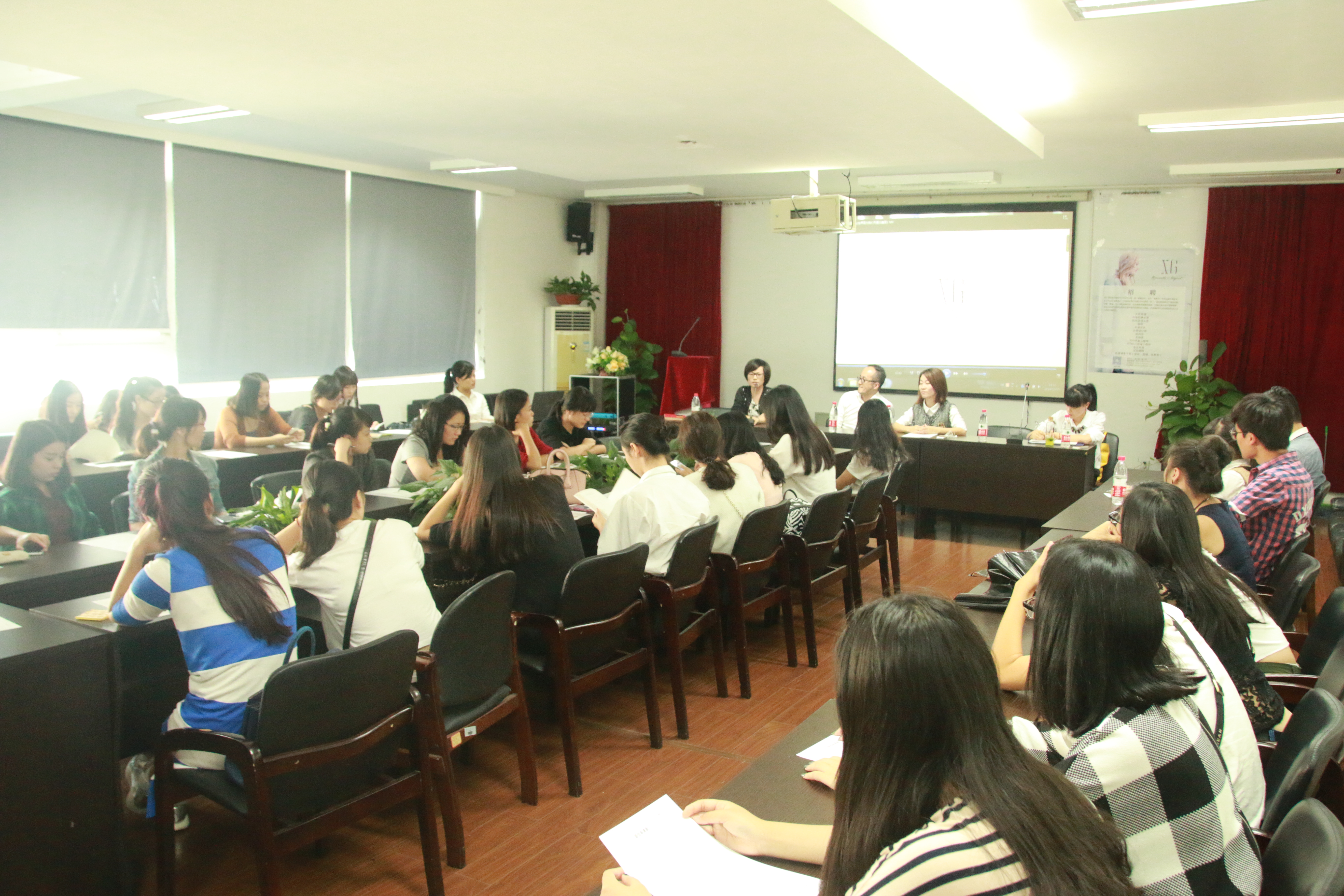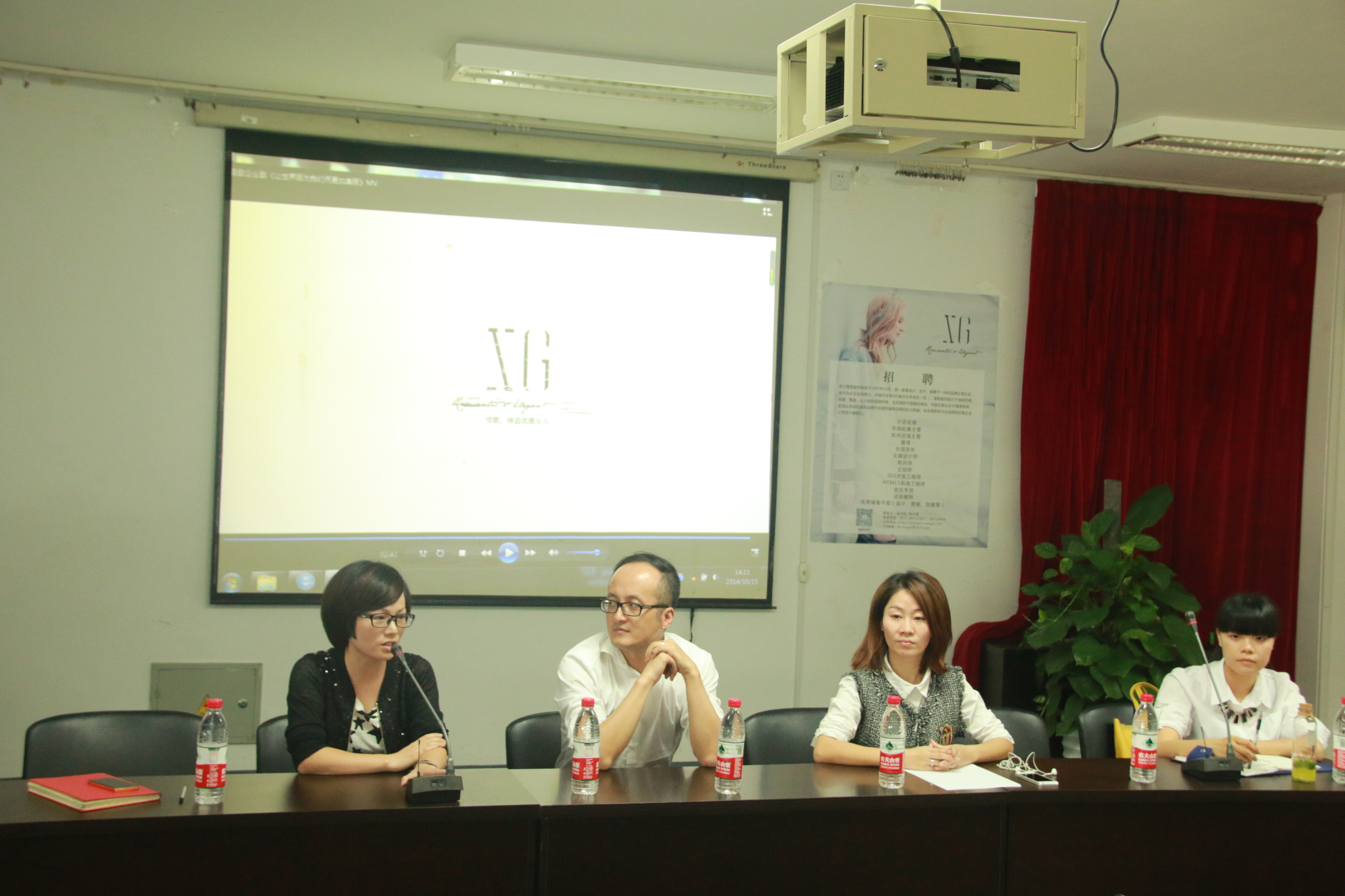 10月15日下午2点,雪歌服饰有限公司招聘宣讲会于2B4001举行。参加此次会议的有雪歌服饰有限公司总经理康峰、雪歌服饰有限公司人事部经理木小春、努努影院 学生科副科长叶如芳以及11级服装专业的所有同学。这是一次和企业面对面直接交流的机会,毕业班的同学们都非常珍惜这个机会并积极参加。