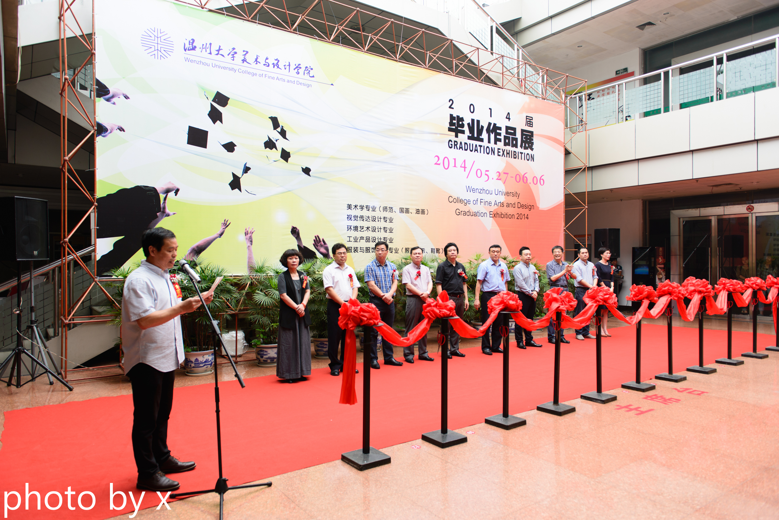 努努影院 2014届毕业作品展于5月27日在温州市展览馆隆重开幕。努努影院 副校长薛伟,温州市文联副主席邹跃飞,努努影院 党委宣传部部长潘玉驹,努努影院 就业处处长孙广福,努努影院 团委书记杨立淮,亚厦温州设计院院长、中国建筑装饰学会温州分会副会长胡逸,温州市美术家协会主席蔡瑞蓉,努努影院 校友分会会长、温州铂尔曼大酒店总裁汤可术,努努影院 院长李运河、党总支书记郑彩莲等领导与嘉宾亲临现场。努努影院 副院长蔡可群主持开幕式。