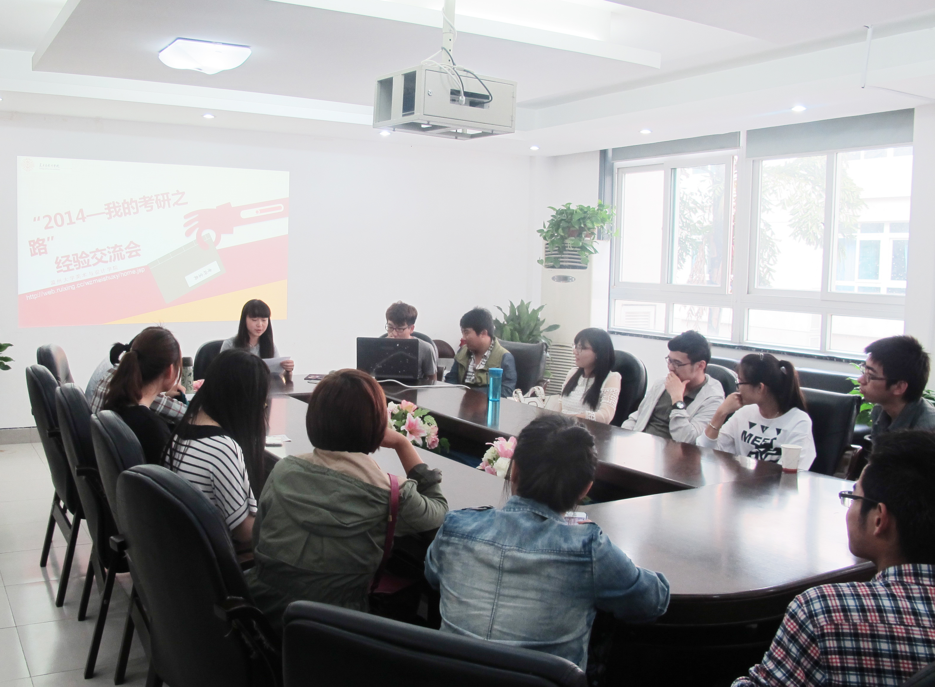 5月14日下午,由努努影院 团委学生会学术科技部主办的“2014梦想的延续——我的考研之路经验交流会””在2B-216顺利举行。学生科副科长叶如芳、辅导员杜茜老师和10级考研录取的同学出席了此次活动。