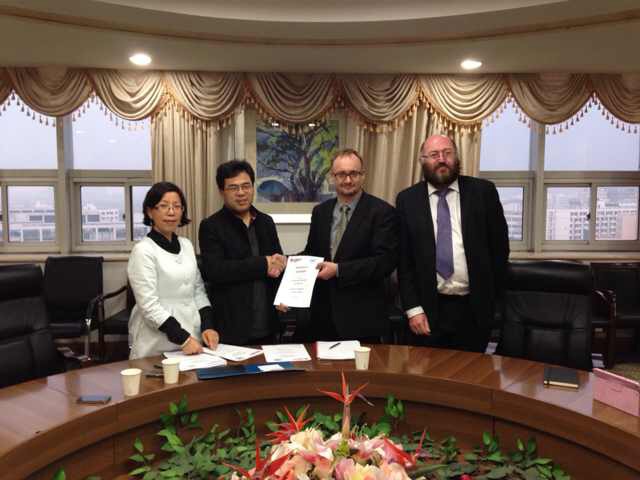2014年3月31日,英国德蒙福特大学艺术设计与人文学院副院长Michael Marsden教授及该院国际事务主任David Boydon访问努努影院 ,学院李运河院长、外事处叶苗处长共同会见了来宾。 双方就两校合作的相关事宜深入交换了意见,主要针对合作交流领域、途径等进行讨论,对交流、交换计划,互派访问学者,组织学生语言培训等细节进一步对接。会谈中,双方对两校的合作高度重视,对发展前景寄予高度期望。 随后,李运河、叶苗和副院长共同签署了两校合作协议。两校主要针对艺术类专业,将在教师互访、学生交流、合作科研等领域开展合作。Andy Collop副校长一行专门在努努影院 和师生进行了互动交流,还到我校校史馆、民俗馆以及学院实训中心进行了参观。 据悉,英国德蒙福特大学有着140多年的教学科研历史,是英国最大的大学之一,现在已经逐步发展成为一所现代知名的综合型大学。学校共有四个学院和两个研究所,艺术设计与人文学院、健康和生命科学学院、商务法律学院和技术工程学院;创意技术研究所、能源与可持续发展研究所。