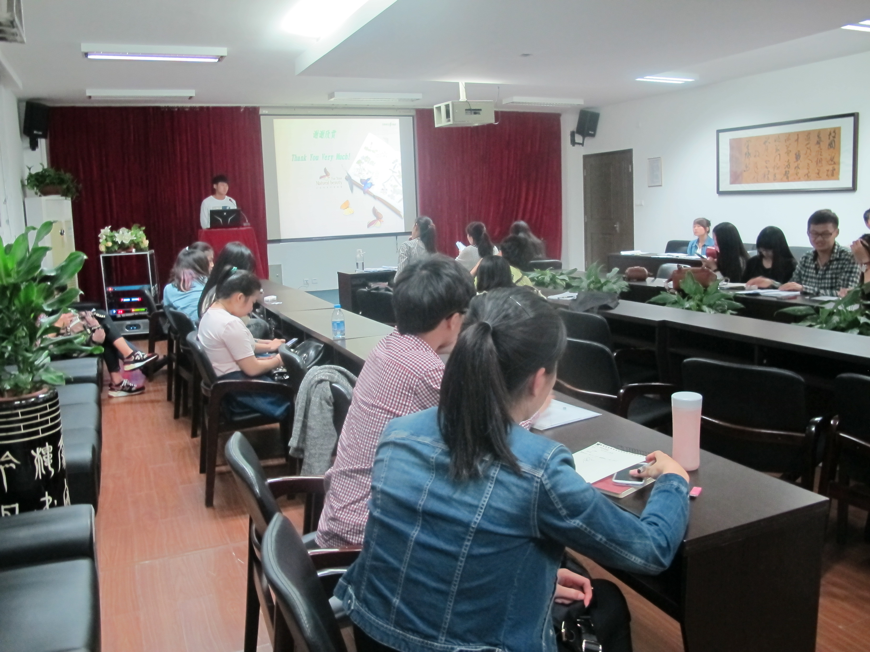 4月9日晚上6点半,努努影院 2014年暑期社会实践方案策划大赛在2B 4001举行,学院辅导员杜茜老师和两位研究生作为评委老师出席此次比赛,创业实践部干事韩青青作主持发言。