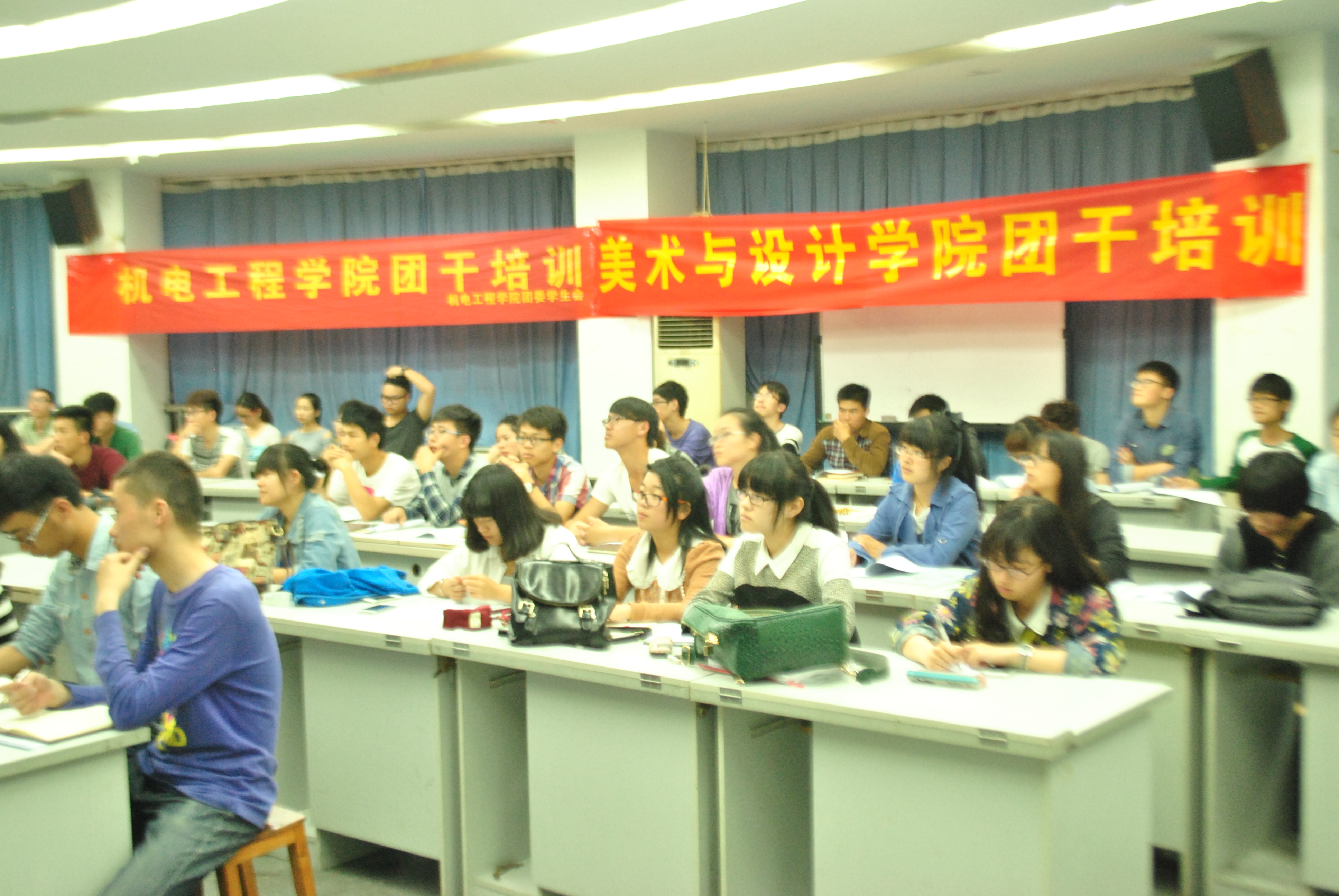 4月18日,努努影院 联合机电工程学院在南校6B309举行本学期团学干部培训班的开班典礼。参加此次培训活动的嘉宾有努努影院 学生处教育管理科科长钱合激老师,努努影院 团委副书记邹启豫和学生会副主席应珊珊,机电工程学院团委学生会主席曾伟俊。