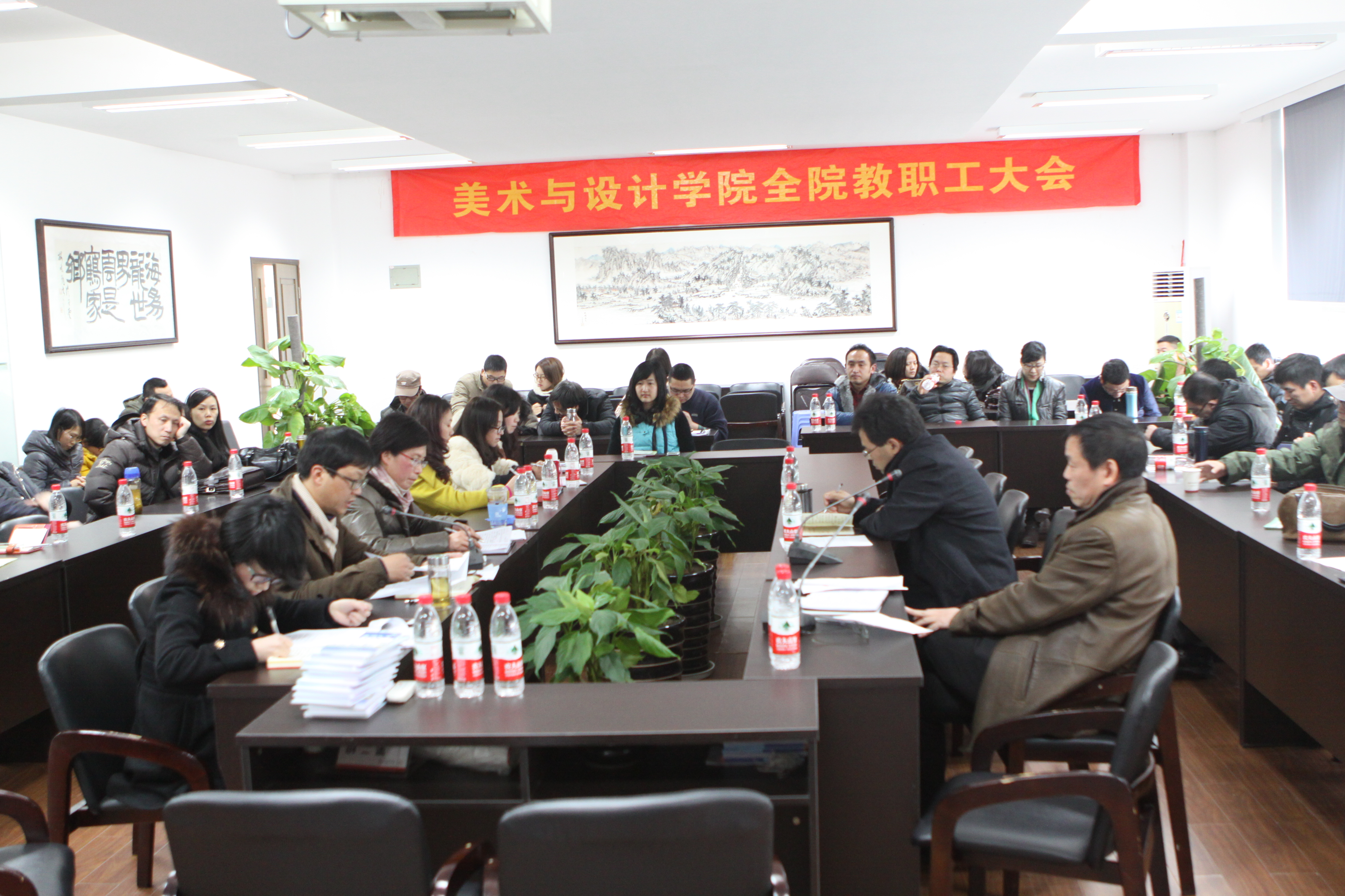 2014年2月19日,努努影院 在2B4001多功能厅召开新学期第一次全院教职工大会,学院领导李运河、郑彩莲、蔡可群、杨振海及全院教职工出席了会议。会议由院党总支书记郑彩莲主持。