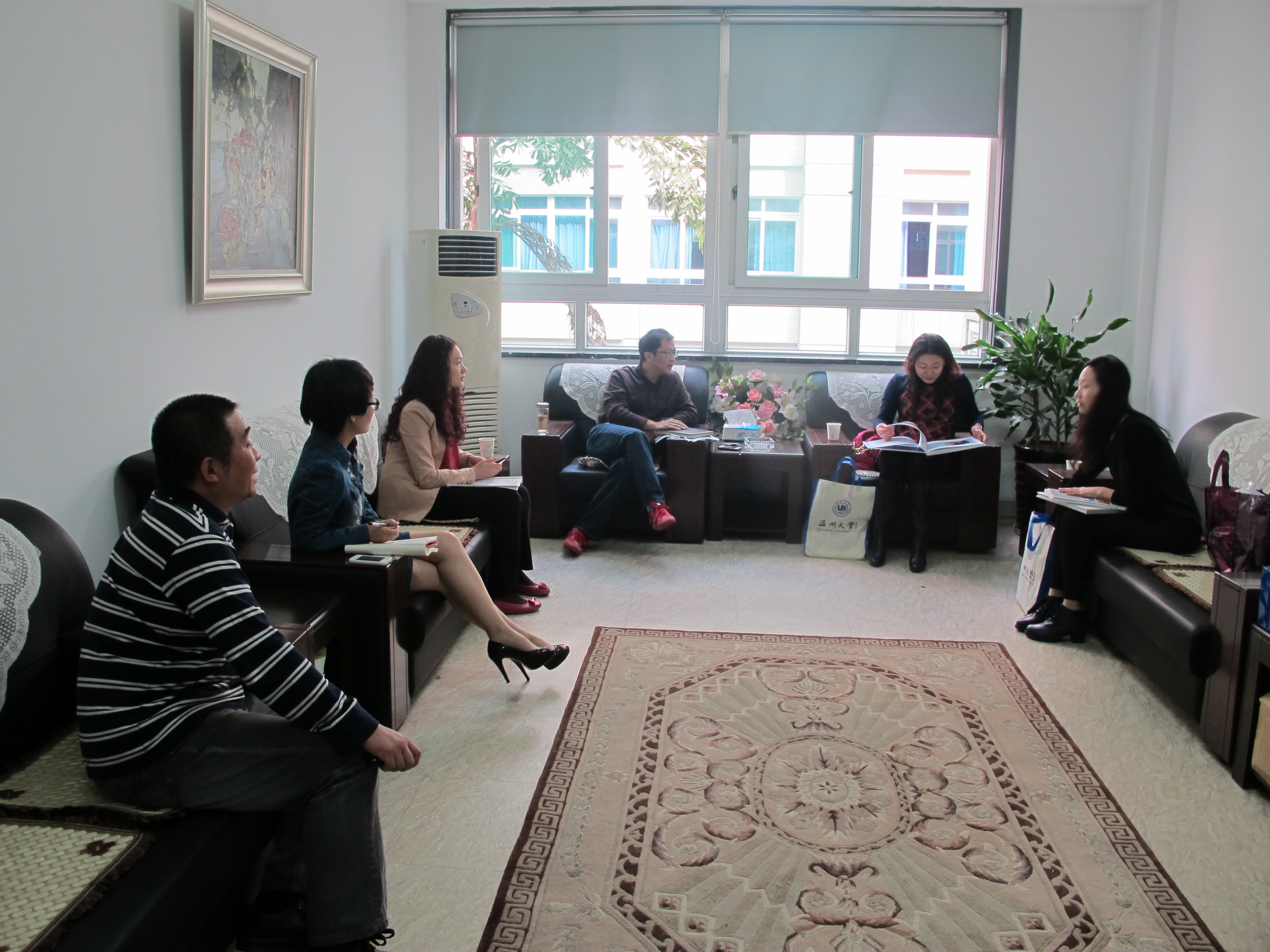 10月30日上午,唐山师范学院美术系书记李丽娜、招生就业办公室副主任李旭一行来努努影院 考察交流。学院党总支书记郑彩莲、副书记杨振海、办公室主任李丽、美术系主任陈伟、学生科副科长叶如芳等会见了客人,双方就学生工作、美术系专业建设等内容进行了工作交流和探讨。