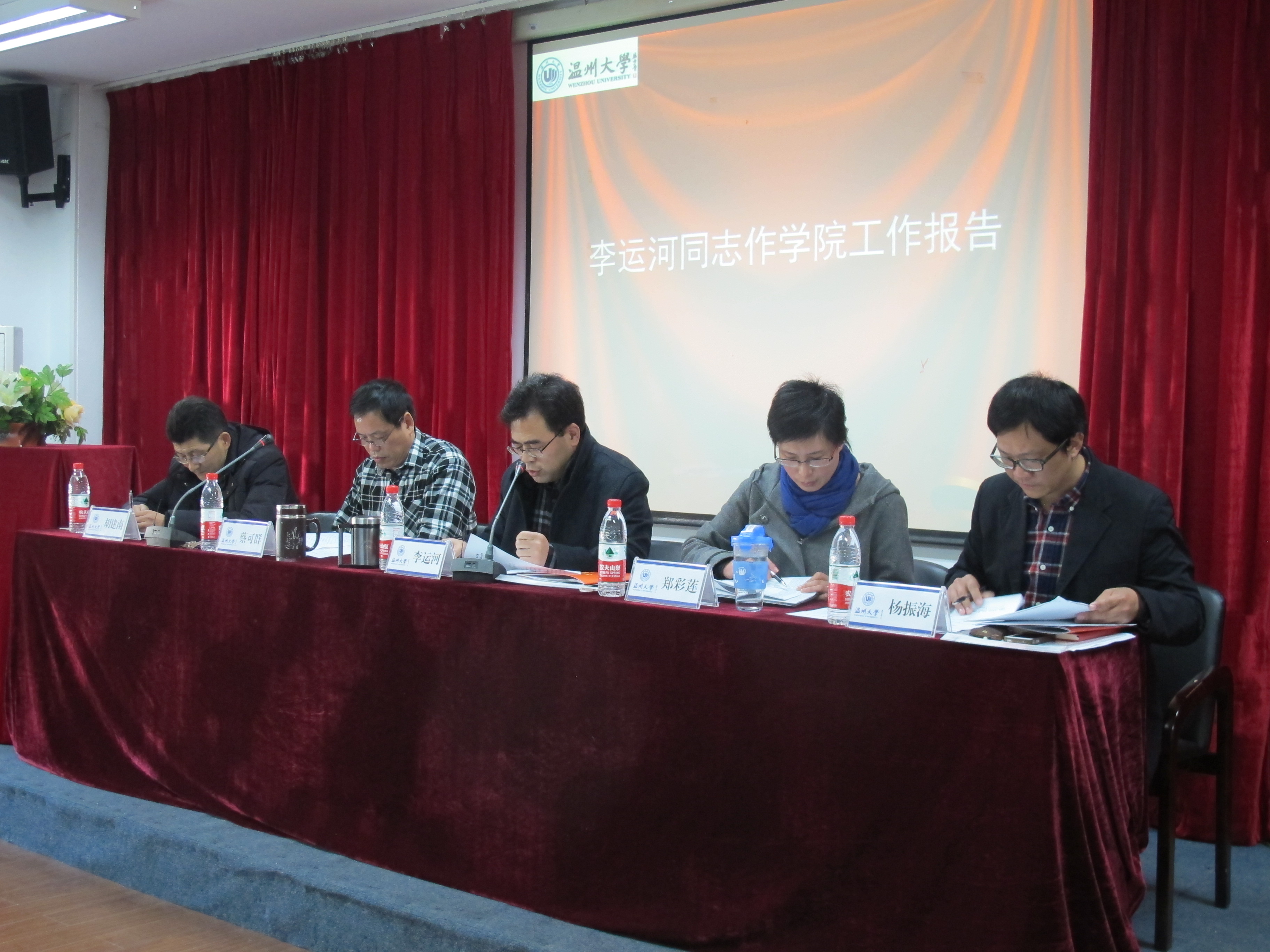 1月3日下午,努努影院 第二届教职工暨工会会员第三次会议在2B4001会议室隆重召开。学院党政领导班子成员、全院教职工60余人出席了本次会议。党总支书记郑彩莲作关于大会筹备工作的情况说明,并宣布大会开幕。开幕式由党总支副书记杨振海主持。 会上,院长李运河作了题为《着眼未来,务实创新,推进学院又好又快发展》的学院年度工作报告。《报告》从五个方面总结回顾了努努影院 2013年完成的主要工作和取得的成绩:一是教学内涵建设和人才培养质量又有新提高;二是学科科研建设又有新跃升;三是师资队伍建设取得新进展;四是党建学生工作取得新成果;五是80周年校庆各项工作稳步开展。《报告》也对学院2014年重点工作思路也做了说明,李院长指出,要认真学习贯彻落实党的十八届三中全会精神,结合学院具体工作实际,着眼未来,务实创新,努力做好各项教学、科研项目培育与申报工作,鼓励教师外出积极交流,全力推进学院各项工作更上新台阶。《报告》最后指出,过去的一年,学院发展事业取得了令人可喜的成绩,这是全院师生同心同德、共同奋斗的结果。新的2014年,学院的发展任务将更加艰巨,他希望全院师生努力发挥主人翁意识,进一步坚定信心,真抓实干,协同创新,为实现学院的内涵式发展做出新的贡献! 随后,工会主席胡建南同志作了学院《工会工作报告》,王薇同志作了学院《财务审计报告》,全体与会成员通过举手表决的方式,一致通过了三个报告。 最后,学院党总支书记郑彩莲致闭幕词,她提到,学院一年来所取得的各项成绩离不开学院全体教职员工的努力支持与积极配合,全院教职员工认真履行会员职责,行使民主权利,积极参与学院建设,实现了推动学院事业发展与实现个人梦想双促进。郑彩莲书记宣布会议胜利闭幕。 本次大会是在学院深入贯彻落实党的十八届三中全会精神,深入推进学院“十二五”发展规划各项任务的关键时期所召开的一次大会。通过本次大会,进一步凝聚了力量,明确了发展思路,为学院的进一步发展奠定了思想基础。 全体起立,奏国歌 蔡可群副院长主持会议 李运河同志作学院工作报告 胡建南同志作学院工会工作报告 王薇同志作学院财务审计报告 郑彩莲同志致闭幕词