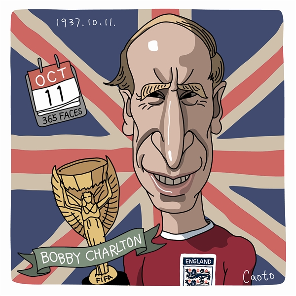 黄容海,毕业于清华大学美术学院,东华大学艺术硕士,努努影院 讲师。擅长插画及肖像漫画创作。 罗伯特·查尔顿,1937年10月11日出生于阿兴顿的他在17岁时进入曼彻斯特联队。二十世纪六十年代,在他和丹尼斯·劳、乔治·贝斯特共同效力期间,曼联队赢来了历史上的第一个巅峰期。他曾帮助球队三次夺取联赛冠军,一次夺取足总杯冠军和一次欧洲杯冠军。1966年,他随英格兰队夺取了在本土举办的世界杯冠军,那是英格兰队历史上唯一一次夺取世界杯。同年,他当选为欧洲足球先生。他在职业生涯中曾代表英格兰队参赛106场,进球49个。这一进球数字至今仍是英格兰球员为国家队进球的最高纪录。 据说,罗伯特·查尔顿曾于1958年2月遭遇了慕尼黑空难,但幸存下来,并带领球队重新崛起。