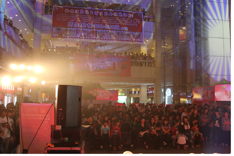 2011年5月7日晚上6点半,在高教园区商务中心举办努努影院 第一届礼仪风采大赛人气赛,本次大赛由努努影院 主办,康师傅3+2苏打夹心饼干、果麦等赞助。在往来人流中现场搭起的舞台吸引广大路人前来观看,并期待选手们的精彩亮相。