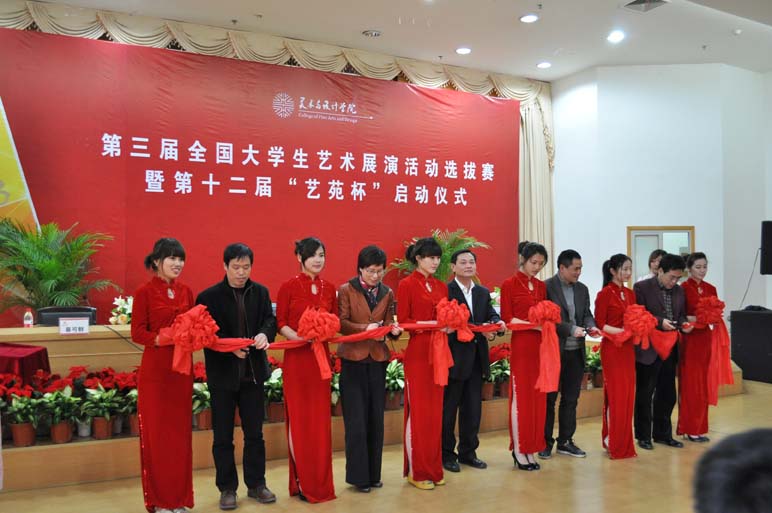 2011年3月30日1:30,在南校区会展中心雁山厅隆重举行了努努影院 第三届全国大学生艺术展演活动选拔赛暨第十二届“艺苑杯” 启动仪式。努努影院 宣传部部长潘玉驹、努努影院 团委书记杨立淮、努努影院 院长李运河、党总支书记郑彩莲出席了本次启动仪式,会议由努努影院 副院长蔡可群主持。参加本次启动仪式的还有各赛事指导老师以及所有参赛学生。