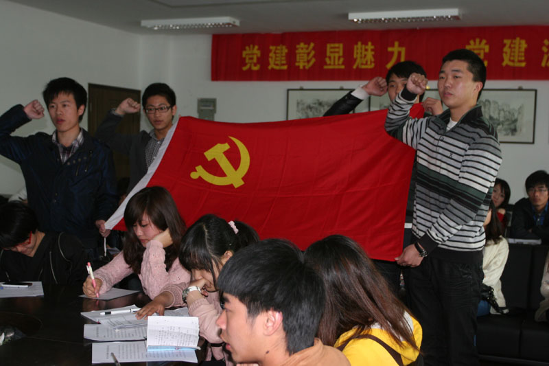 4月6日下午2点,努努影院 第14期业余党校开学典礼在2B4001会议室举行,学院党总支书记、分党校校长郑彩莲出席典礼,学生科辅导员徐聿淼老师,刘英丽老师参加,同时学生各支部书记、第十三期分党校优秀学员及分党校全部学员参加典礼,开学典礼由徐聿淼老师主持。 伴随着雄壮的国歌声,全体人员肃穆起立,高唱国歌。接着预备党员在庄严气氛中宣誓,会议室回荡着他们铿锵有力的宣誓声音,充满了浓重的历史感。牛广强同学和于洋同学作为党员代表和入党积极分子代表发言,牛广强同学以自身经历给本期学员提出建议,号召他们珍惜培训机会,端正入党动机,在学习过程中不断提升自我;于洋同学表示成为入党积极分子是催人奋发上进的动力,在座学员应该树立正确的人生观、价值观,用虚心的学习态度和良好的学习成绩早日向党组织靠拢。典礼上郑彩莲书记为学院第13期分党校优秀学员颁发荣誉证书,柳俊丰宣读了本期党校的培训计划以及注意事项,强调了党课纪律,并对党课培训计划做深入解读。 随后郑彩莲书记对本期学员表示热烈欢迎,并提出殷切期望。郑书记首先结合入党誓词中的关键词展开解读,对每位学员提出要求,号召学员以党员的标准严格要求自我;并针对党员代表的发言,谈到党员成长和境界的提升历程,希望在座学员在学习中提升自身境界,向党员看齐,追求进步,辐射周围同学;然后,结合国际国内形势,以及自身工作环境和生活条件的改善,勉励学员真信、真学共产党,用信仰的力量增强对党组织的认识;郑书记强调今年大事喜事不断:迎接建党90周年、学校、学院十二五开局、学校第一届党代会即将召开、创先争优进入关键时期等,学院将举行系列特色活动,希望广大积极分子能够在艺苑杯比赛、第三届艺术展演中有身影,有精品,展现风采;接着结合组织谈话中出现的问题,要求学员们课堂认真听讲,课下勤于思考,着重思考马克思主义与反马克思主义的界限、中国特色社会主义民主与西方民主的区别、社会主义文化与封建主义、资本主义文化的差异等理论问题,不断坚定自身信仰,提升自身修养;最后郑彩莲书记希望在座学员认真对待本次学习机会,遵守纪律,顺利毕业,用优异的成绩向党组织靠拢。 开学典礼后,学员们认真观看了电影《建国大业》。