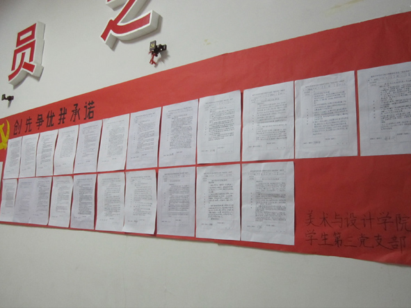 3月21日晚,努努影院 学生第三党支部在学院党员之家郑重开展学生党员“创先争优”公开承诺仪式。 会议在支部书记安增振同志的讲话中开始。安增振围绕上学期支部“创先争优”活动做阶段性总结,通报了各活动开展情况,肯定了其中积极的方面,希望大家继续保持,同时提出不足,期望大家改进和加强,共同将支部建设得更好,不断在“创先争优”活动中创造佳绩。接着,安增振带头宣读了自己关于“创先争优”活动的新承诺,并鼓励大家继续参与和投身到“创先争优”的活动中。支部党员轮流上前宣读自己的承诺书,共同把好总结关,做好展望关,承诺将一如既往地贯彻和坚持“创先争优”的指导思想,发挥支部的战斗堡垒作用,创新党建载体,丰富组织生活。最后,每位党员的承诺书都被郑重地贴在了学院党员之家,通过公开晒承诺,互相监督,互比互学,共同进步。 “创建先进基层党组织,争当优秀共产党员。”在党员之家那张长达3米的海报上,每一张承诺书都承载着党员成长的足迹,并将见证每位党员认真去执行自己承诺,发挥模范带头作用。 据悉,学生第三党支部已经做好党员动员,在创先争优活动中,将通过支部与学生会共建、非毕业班党员与毕业班党员结对等活动将“创先争优”落到实处,做出实效。