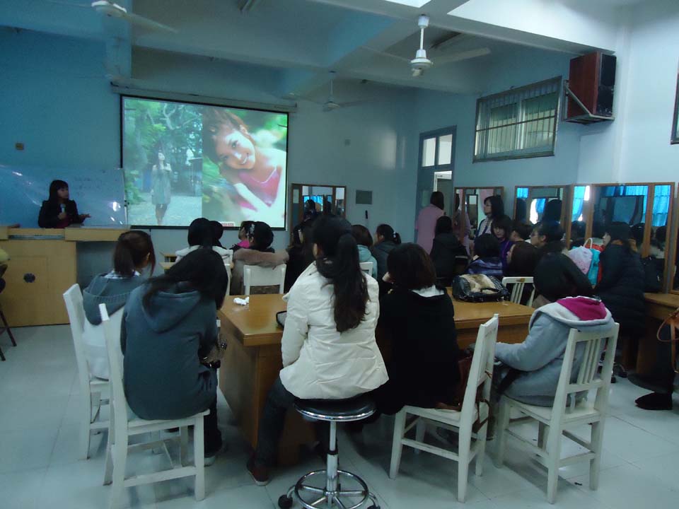2011年3月27日下午2点整,在努努影院 南校区2A103开展了本学期美院化妆培训班的第一堂课程。主讲师是著名化妆师朱来顺老师,整间教室座无虚席,前来听课的学生满怀期待。
