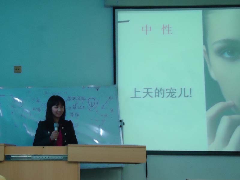 讲课之前,老师向大家分享自己的蜕变经历,认为每个女孩都应是美丽的风景线。第一印象很重要,我们应树立信心改变自己。随后进入正题,细析我们日常皮肤保养的步骤。为了让大家对自己的皮肤有个更清晰地认识,“对症下药”,老师将五种不同的肤质进行一一剖析,学会选择合适的护肤品。