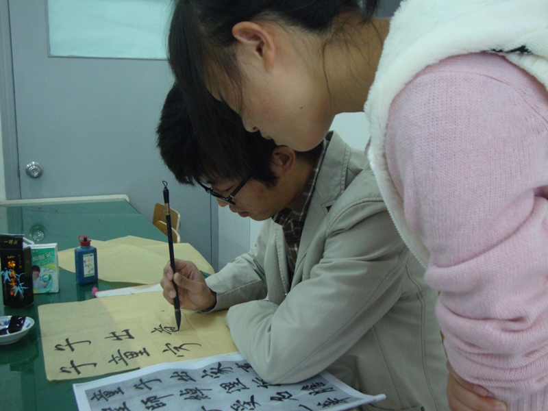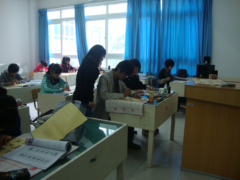 2010年11月21日上午9点在努努影院 2B2001教室和2B4001教室内,努努影院 书法培训素拓班正在开始本学期的最后一堂课。 该培训班是努努影院 团委素拓中心开设在努努影院 的一个书法培训班,由努努影院 08美术国画班的陈龙龙同学担任该班指导老师。该班于本学期第六周开课,累计上课次数6次,上课时间固定在每周周日上午9点至11点半在努努影院 2B2001和2B4001,该班成员来自学校各个学院,其中正式学员40余人,旁听生10多人。 根据学生上交的心得来看,陈老师很尽职尽责,而且循循善诱,在学生中口碑很好。陈老师不光光有着老师的身份,还是一位学长,更贴近学生生活,具有亲和力,有利于彼此间的沟通交流,对学生们书法水平的提高有很大帮助。在谈话中了解到该班在上课期间曾有过一次表演活动,老师当堂表演4分钟的书法,技艺精湛,赢得了学生们的一致好评。课堂上,同学们都认真在练习毛笔字,学习氛围浓厚,老师则在一旁指导,给出了很多宝贵的建议。 据悉,在此次课堂结束之后还将开展一次书法表演,这会是一次很好的书法交流的平台。大家尽请期待!