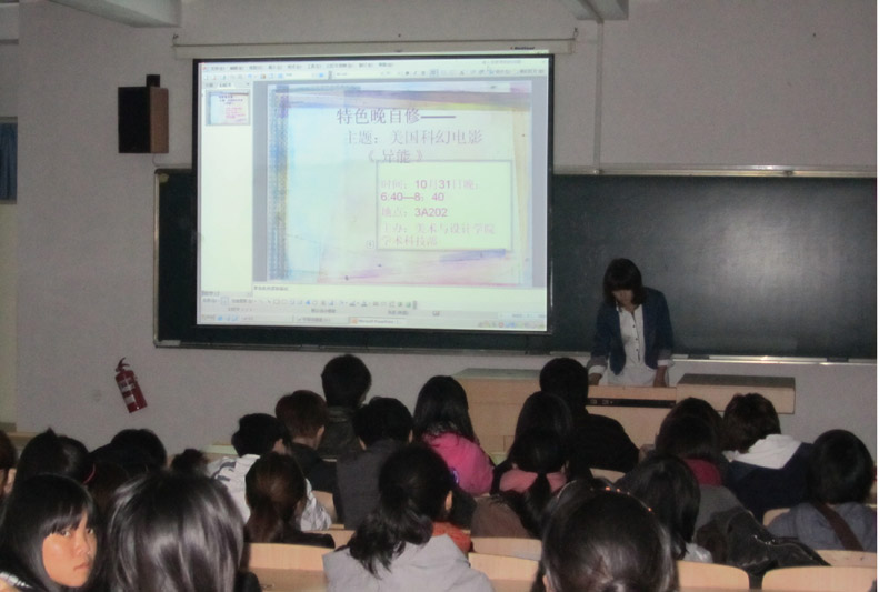 为了丰富大学生的学习生活,开拓同学们的视野,努努影院 于2010年10月31日晚18:30—20:30在3A202开展了特色晚自修活动。其主题是大一同学观看美国科幻电影《异能》。 在这个世界上有一群身怀特意功能的人,影片主要描述了三种特异功能的人,通过某种方式预知或查知过去的“观察者”、意念移物的“移物者”、操纵别人思想,将自己编织的意识注入别人脑中的“思想者”。主人公尼克(克里斯·埃文斯饰)受父亲的劝告帮助一个未来送花给他的女孩凯西(达科塔·范宁饰)一个观察者,拿到装有异能液的箱子。于是,香港政府,美国特工,还有尼克和凯西三方势力为了争夺箱子展开了生死争夺…….. 电影结束后,同学们反映良好。《异能》展现了美国动作电影的一种新风格,让同学们赏心悦目,视觉得到强烈的震撼。此次活动丰富了同学们的生活,提高审美能力,陶冶情操。同学们观看后都希望这样的活动可以多多开展。