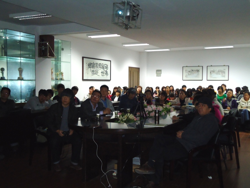 2010年11月9日上午9点,在努努影院 2B4001举办了由福州画院院长,温籍著名画家谢振瓯教授主讲的《东西方绘画的图示观、造型观比较》讲座。努努影院 院长曾维华教授、办公室主任尹乃军,学院部分专业老师,温州文化机构代表以及美术专业学生参加了本次讲座。 讲座上,谢振瓯教授在幻灯片上向同学们展示自己的心血之作,其中有《丝绸之路》、《长安西市图》(局部)、《大唐伎乐图》、《唐玄奘荣归长安图》等等优秀大作。这些画都是谢教授平时采风所作,丰富的阅历及深厚的文化底蕴使每幅画作都充满着内涵及魅力。在展示的同时,谢教授悉心向在场人员讲解各幅画的背景及内容含义,讲述古代的人文习俗,获得在场师生频频点头赞同。谢教授讲话中提到西方绘画注重点线面,而我国更注重线的流动性、无限性与曲折性,强调感觉。谢教授说道,不要画一张画的时候才构图,要平时常画小构图,去理解、去掌握构图方法,不要忽视对生活的敏感,要观察生活,重视感觉。多用笔画,而不是拿着照相机到处拍。谢教授认为画画就是画什么与怎么画,这两者是相辅相承的。画面的虚实对比布置,颜色倾向的运用,他都一一作了讲解。谢教授重视形象,形是一种外在的形式,像是内在属性规律,多用形象去记录生活。他认为这些图案代表一个民族,一种文化,时尚及寄托。讲座之余,谢振瓯教授耐心解答现场学生的疑问,让在场老师们及学生们获益匪浅。 最后,曾维华院长致词希望同学们多去思考、体味谢教授的讲话,并运用于实践中去。 接近两个多小时的讲座,谢振瓯教授的精彩讲说,使在场师生受益良多,对东西方绘画有了深刻的认识及体会,尤其是国画的精髓,对以后的画作提供了帮助。