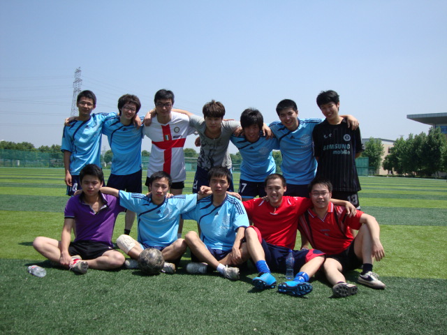 学长们,请一路好走! 期末临近,欢送毕业生已成了校园内掀起的热浪大潮,特此我们努努影院 于6月6日上午10点在北校区足球场举办了一场足球告别赛。 大家顶着炎热的骄阳在场上拉开攻势:顶球、转身、过人、带球、踢球、进球——“好球”,四周响起一阵鼓掌声。球场上,一反过往激烈角逐的气氛,也抛开了以往送别感伤的画面,今天大家都沉浸在轻松愉悦的氛围中。身着红、蓝、黑运动衫互逗的他们俨然成了一道亮丽的风景线。在中场休息的时候,大家聚在一起,闲话家常,聊得不亦乐乎,最后还一起留念合影,看着大家相拥在一起拍照的摸样,感动不言而喻。有人说,照片是捕捉回忆最好的礼物,希望这一刻的快乐可以像这些照片一样永恒存在。 虽说这是场具有特殊意义的球赛,不似真正比赛的斗狠较真,然而还是可以看到精力充沛的80、90后在球场上活力四射却不失亲切和善的一面。后半场比赛中,大家明显放开了很多, 互相之间的交流多了很多,每个人的脸上堆满了笑容。最后,在约定的三颗球下结束了此次足球赛。球赛虽结束了,但校友之间的友谊却永远长存。 最后让我们衷心的送上祝福:祝06级的学长、学姐们飞黄腾达,前程似锦!