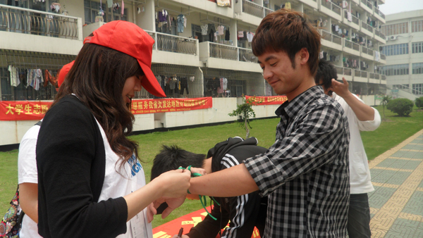 5月12日,两年前的这一天,黑色蔓延。有多少人在一夕之间失去了所有,家、亲人、生命!地震虽已过,但伤痕还在,让我们为那些逝去的人,为那些幸存的人在心中默哀,祝愿他们无论在哪都要健康快乐! 今天11时,努努影院 “艺家人”青年志愿者协会带领志愿者在温大生活区A区开展了5·12纪念活动。 空中久久环绕着默哀鸣笛声,笛声如幽怨的哭声激起了每个人心中的伤痛。来往的同学和教职工远远看到志愿者们进行的活动,纷纷在活动横幅上签上庄重的一笔,并将自己的祝福写在便利贴上,然后贴在心愿墙上。志愿者们为参与的同学和教职工的手上系上了绿丝带。据说绿丝带寓意“面向未来,充满希望”。我们希望灾后幸存的人在逆境中勇于拼搏,不放弃希望,不放弃未来。温州著名电视新闻栏目《百晓讲新闻》特地前来采访了此次活动,志愿者们希望借此机会将自己的心意通过电视台传达给全市市民,期待所有有心人能够尽绵薄之力帮助那些幸存的人。 此次5·12纪念活动彰显了我校大学生强烈的社会责任感和优良的传统美德,得到了在校师生的良好反响。