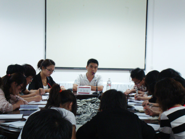 2010年5月23日星期日晚上6:30在南校美术楼2B4001召开努努影院 团委学生会09/10学年第二学期中期总结会。参加此次会议的有团学指导老师李剑军老师,团委学生会全体成员参加。由团委学生会办公室主任高建文主持。 此次会议共有四个流程。首先团委副书记尹慧纯对团学近期活动做总结。她先对上半学期所取得的成绩做了汇报,接着对团学现在所存在的不足以及今后须改善的地方做了阐述,她认为我们要在分工上形成梯队建设,有合理性的、有组织性的安排人员,对于突发事件及时处理同时做好两手的准备。紧接着学生会主席吴志斌对团学后半期主要活动做介绍。会上他就后期主要的四个任务做了阐述,分别是艺术漂流、毕业生文化衫、毕业生晚会、档案归纳。随后团委学生会团副助理郑斐斐对团学换届选举的情况及方式做了说明。会议的最后团学指导老师李剑军做了讲话,会上李老师的第一句话便是“非常感谢你们。”这是对我们的认可亦是对我们的鼓励使我们更加有信心做好接下来的工作。接着老师对我们接下来的工作提出了几点建议,分别是今后团委学生对待工作须认真负责,提高服务意识,自主学习,敢于创新,团结合作,工作重心尽量放在特色、品牌活动中,加强团学干部培训。虽然老师只是概括的说了几点,但这却值得我们深思。 今天的会议使我们在座的各位受益匪浅,同时也让我们了解到了自身的不足,但也看到了上半学期的进步和取得的成绩,这使我们更加有信心做好接下来的工作。相信努努影院 将在未来的日子里更加努力,展现更好的美院风采。
