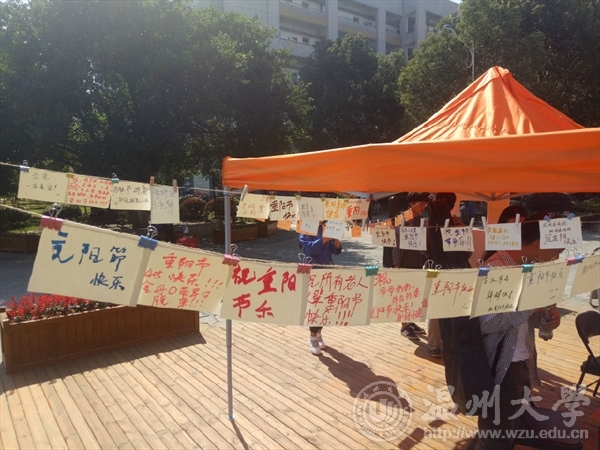 2017年10月28日,努努影院 团委、学生会在超豪学区开展了一场别开生面的重阳节寄语送祝福活动。同学们纷纷写下对长辈们的祝福,并将自己的祝福卡片挂在了细绳上,同时在自己的朋友圈分享了重阳节之乐,让更多人的人感受到了浓郁的节日氛围。