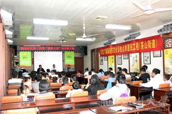 阳光明媚的早晨因小朋友们的欢声笑语而变得更加温暖,小朋友们各自找到自己喜欢的志愿者哥哥姐姐旁边坐下,仪式也就此拉开了序幕。首先由梅泉社区负责人贾国强先生讲话,他代表梅泉社区表达了对志愿者们的感谢与期盼。紧接着,团学指导老师李雪涛老师也表达了对此次活动的期望,同时在对志愿者肯定之余也强调了几个新要求,即希望志愿者能给小朋友带去适于他们去参与的结合优秀传统文化和温州独特艺术的活动,使温州成为一个创业园也是艺术园。同时还有志愿者代表徐静同学发言,使大家更加期待了这次的活动。