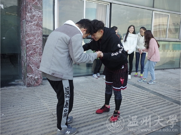 最后一个项目是一方有难八方支援,同学们发挥出无私奉献的精神,应要求纷纷奉献出自己的衣服、鞋子、袜子、甚至是自己。