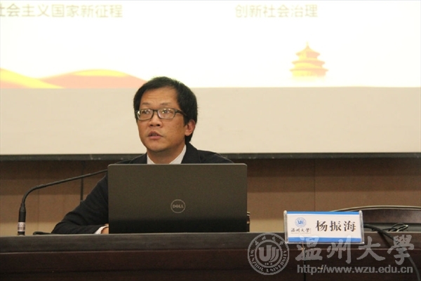 12月6日下午,努努影院 在岩松堂雁山厅组织开展形势与政策课教学,学院党总支副书记杨振海为17级全体同学作“十九大报告精髓要义导读”报告。
