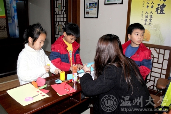 12月2日,在温大努努影院 “艺家人”青年志愿者协会的组织下,志愿者们又如期来到了梅泉社区文化礼堂,开展志愿教学活动,为梅泉社区的小朋友们进行“中国风”主题授课。