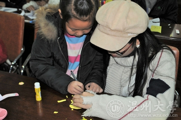 2017年11月25日,伴着微微的小雨,温大努努影院 “艺家人”青年志愿者协会再一次来到了梅泉社区文化礼堂,进行了主题为“团结”的志愿活动。虽然今天小雨绵绵,但志愿者们的热情依旧,小朋友们的积极性也没有因冬天的来临而减少。这次活动首先开始的环节是你画我猜,分成两组进行,先由第一组画出所给出的词语,给下一组三秒钟的时间看,再由下一组画,最后给最后一组猜出词语。大家都很配合,快速完成,并准确猜出词语,获得相应的奖励。接下来,伴随着小黄人的的主题曲,大家一起看了一段小短片,目的就是希望小朋友们要像小黄人一样在困难面前团结一致不怕困难。接下来,为了加深印象,志愿者们便开始指导小朋友们在纸上画出可爱的小黄人。一个圆圆的身子,一条深蓝色的背带裤,酷酷的黑色镜框,看过小黄人电影的朋友对此一定不陌生。紧接着是突发奇想环节,有的小朋友在分发的气球上画小黄人,还有的小朋友把许多个小黄人推在一起,仿佛是一个能打倒巨大怪兽的超级英雄。最后一个是评奖环节,负责人选出做的最好的五位小朋友,给他们送上精美印章以及荧光笔。没有得到的小朋友们给予他们有趣的圆珠笔作为安慰奖。总之,大家都很满意。小朋友们的动手能力越来越好,与志愿者的互相协作能力也得到了相应的提高,他们的作品可能不是完美的,但他们的所有的作品都充满了团结的力量,让人温暖,给人力量。小朋友们和志愿者们一起完成一张画,一起折好一张纸,一起做一件事,一起欢声笑语,一起度过美好时光,这样团结的氛围让小朋友们感受到了团结的力量是强大的,这些力量也会给社会带去一份温暖和感触。 图/文:金 哲罗会慧董 悦