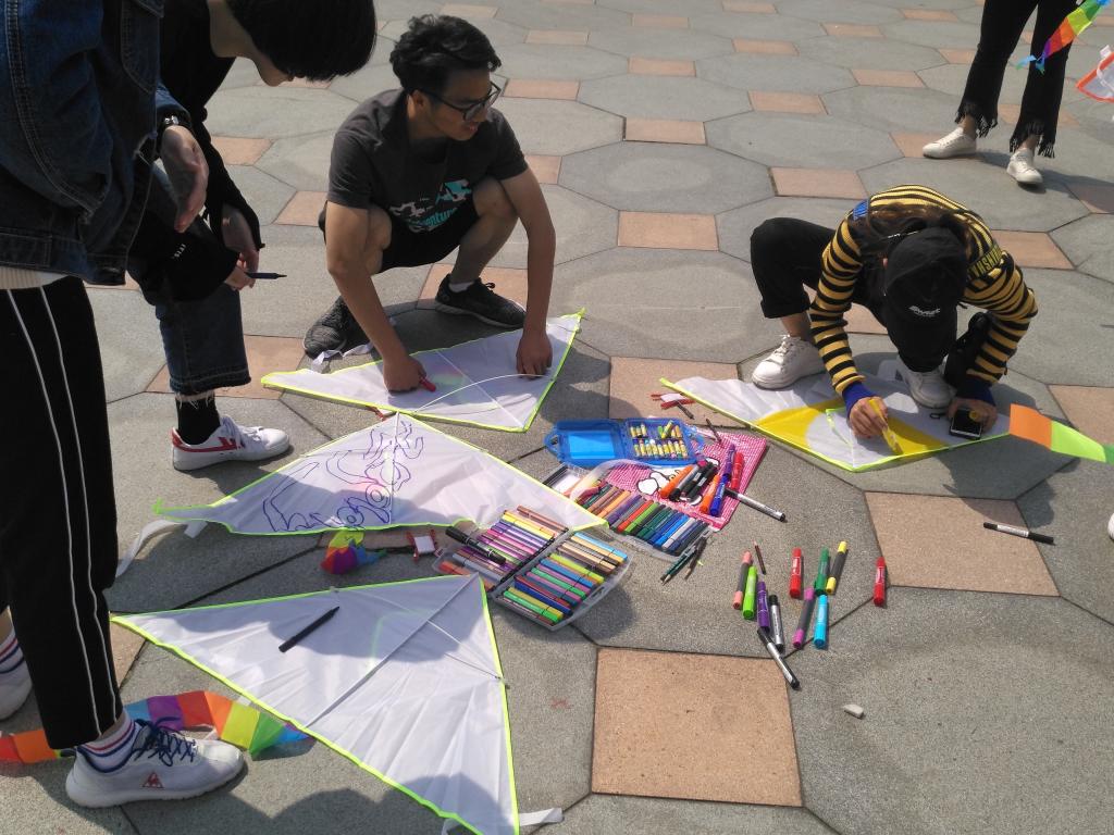 比赛开始前,参赛选手们利用马克笔和颜料等工具在自己的空白风筝上画涂鸦,做出了一只只有自己特色的风筝,不久便引来了很多大人和小朋友们的围观。比赛刚开始,很多选手都控制不了风筝,很难让风筝稳定下来。有的风筝掉到了地上,甚至开始在地面上“漂移”;有的风筝挂在树上,在树上开始了它的“午睡”;还有有两只风筝相撞在一起,像是出了“车祸”,状况连连。一次次的失败后,选手们也渐渐开始摸索到了技巧,耐心的利用风向掌握风筝,变得收放自如。看着一个个风筝越飞越高,选手身边又引来了很多可爱的小朋友。有些选手便拉上旁边的小朋友们和他们一起放风筝,整个比赛现场充满了同学们和孩子们欢声笑语。活动结束后,同学们一起清理场地上的垃圾并将自己的风筝作为纪念品送给了在场的小朋友们。