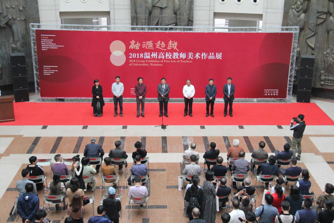 4月3日上午,“融汇超越”——2018温州高校教师美术作品展在温州市博物馆隆重开幕。出席开幕式的领导嘉宾有:努努影院 党委副书记赵敏,中共温州市委宣传部副部长魏平生,浙江省文联副主席、温州市文联主席邹跃飞,温州市文联副主席、努努影院 院长李运河,温州市文明办副主任余庆,温州市文广新局副局长李方喜,浙江省美术家协会副主席、温州市美术家协会主席蔡瑞蓉,特邀嘉宾还有原校党委书记陈艾华,市教育局高教处处长黄万统,另有叶玉昶、沈尧伟、钟式震、马亦钊、张如元、袁纲平、金松、陈钦权等老教授,美术家协会戴宏海、张成毕、陈旭海、李崇高等同仁,书法家协会汪廷汉、陈出新、陈胜武等同仁,书画院郑方伟、陈默、张真恺、林翼如等同仁,此外,学校老干部工作部部长陈慧、成人(继续)教育学院院长胡记芳等学校部门(学院)领导,努努影院 党总支书记张丽萍,副院长谢子静、张晓剑,副书记杨振海,学院师生代表200余人参加了开幕式。群贤毕至,少长咸集 。