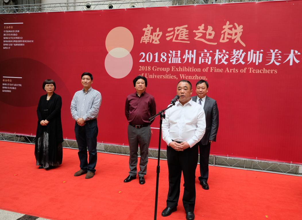 紧接着,由浙江省文联副主席、温州市文联主席邹跃飞先生致辞,他谈到“本次展览,充分体现了党委政府、高等院校、社会各界对温州美术事业的高度重视和大力支持。温州要举办更多高水平的美术作品展览,促进艺术交流,推动艺术发展,丰富广大市民的文化生活,使温州的文艺创作与展示从自觉到有为,形成体现文化自信的蔚然气象。”