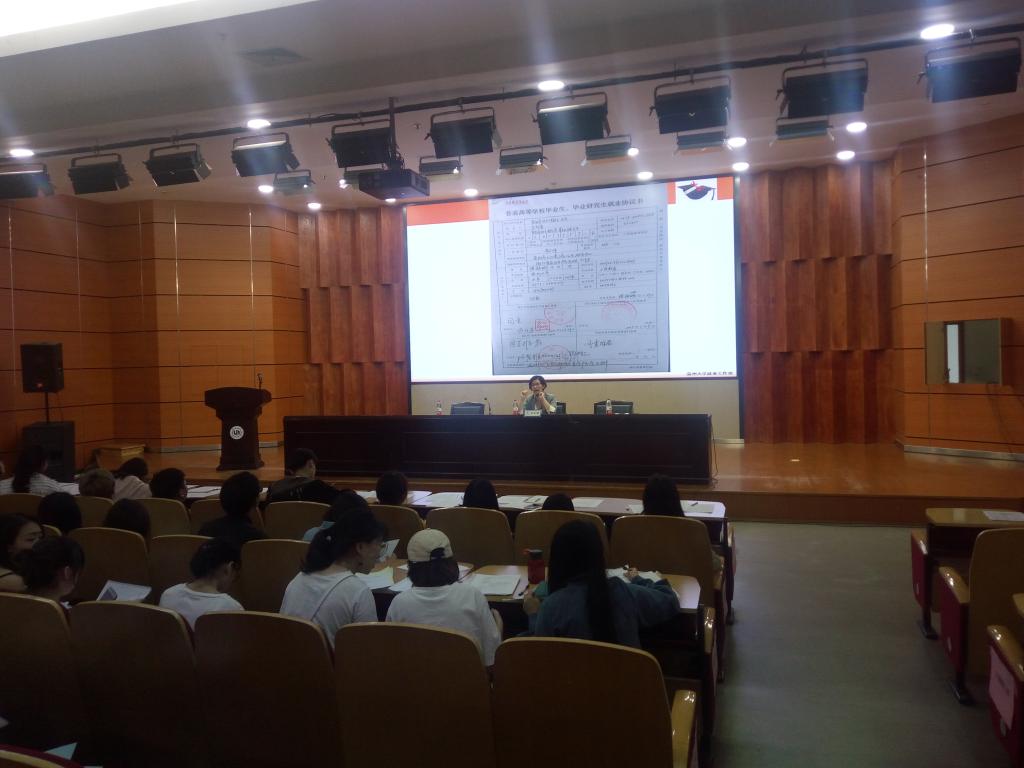 彭小媚老师围绕毕业、就业流程以及流程中相关文件的规范化填写展开,具体包括就业政策说明、教学教务、就业招聘、重要事项。其中,就业招聘包含校内招聘会的信息和注意事项:投递简历、就业协议、劳动合同、就业工作证明;而重要事项根据以历年历届毕业生遇到的问题,为方便毕业生顺利就业、毕业,着重强调毕业生办理毕业手续的整个流程,其中包括《高等学校毕业生登记表》《努努影院 学生档案袋》《报到证》《浙江省高校毕业生就业接收函》以及各个毕业班毕业留念的时间安排等工作。接着教学科邹青老师讲解了毕业生图像采集的相关流程和注意事项。最后叶筱卉老师强调就业的意义,同时勉励同学们要学会在学习中合理安排时间,明确自己的短板,努力弥补不足之处。