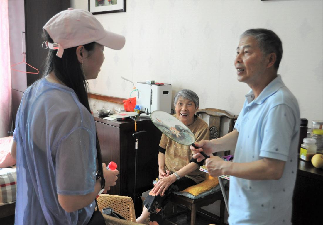 一天的时光这样短暂,从风和日丽到雨过天晴,志愿者们用这一天的时间把毫无光彩的扇面点缀成玲珑的蒲扇,送到老人们的手上,带给他们炎炎酷暑里的些许清凉。我们做着微不足道的小事,但愿能给他们一丝快乐与慰藉。愿老人们身体健康,扇子一扇,幸福就来。