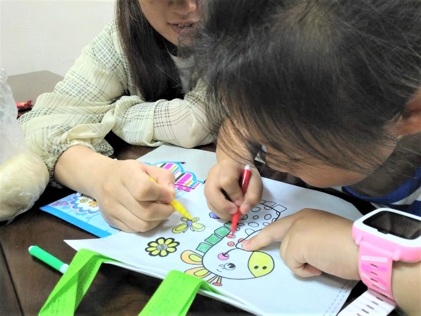 随着小朋友们的入座,今天的支教活动也随之开始。第一个环节,志愿者们和小朋友们开始了环保袋DIY,不久一个个可爱多彩的环保袋展现在眼前,使人眼前一亮,让人不经感叹小朋友们的动手能力!接下来,小朋友们开始用糖纸折出玫瑰花、爱心和小兔子,精巧至极,既环保又美观。最后一个活动是树枝手工活动,形态各异的叶子,形态迥异的树枝,芳香多彩的花朵,组合在一起之后,却变成了一个个可爱的小动物,让小朋友们再次体会到了环保可以从点点滴滴做起。活动结束后小朋友们也是意犹未尽,拿着自己的作品仔细琢磨着,重新体会到了环保手工的乐趣。