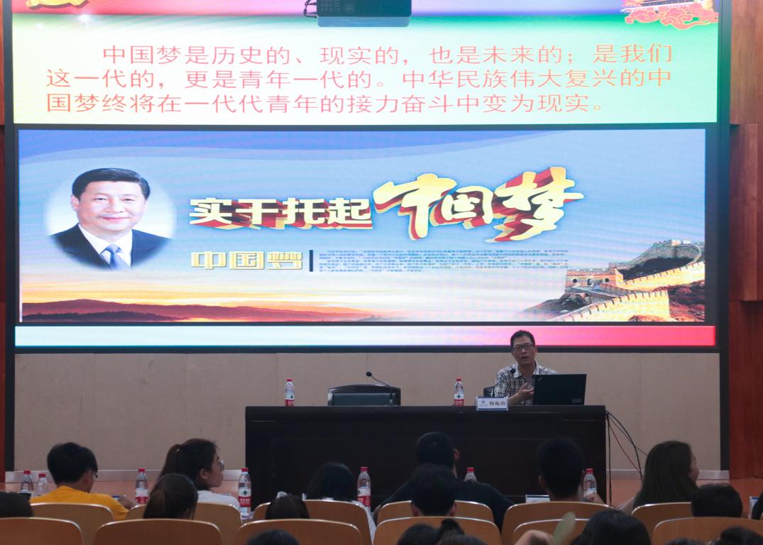 7月4日下午,努努影院 在岩松堂雁山厅组织开展形势与政策课教学,学院党总支副书记杨振海为17级全体同学做“坚持立德树人培养时代青年 加快内涵发展建设高教强国——习近平总书记在北大师生座谈会上的讲话精神解读”报告。