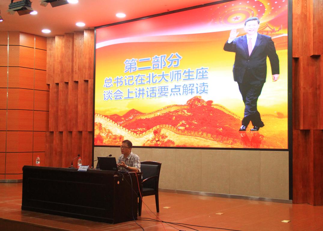 7月4日下午,努努影院 在岩松堂雁山厅组织开展形势与政策课教学,学院党总支副书记杨振海为17级全体同学做“坚持立德树人培养时代青年 加快内涵发展建设高教强国——习近平总书记在北大师生座谈会上的讲话精神解读”报告。 杨书记报告分为三部分,第一部分是总书记莅临北京大学考察的简要回顾,第二部分是总书记在北大师生座谈会上讲话的要点解读,第三部分是学习总书记讲话精神要自觉增强五个自觉。杨书记指出,习近平总书记在北大师生座谈会上的讲话是当的十九大以来,总书记面向高等教育乃至整个教育战线发表的首次重要讲话,对新时代的高等教育工作做出了系统论述,具有很强的战略性、政治性、思想性和针对性,是习近平新时代中国特色社会主义思想的重要内容,是深化教育综合改革、办好社会主义大学的根本遵循,也是青年学生成长成才的行动指南。杨书记认为,总书记的讲话围绕“我们要培养什么样的人”“怎样培养我们需要的人”“青少年怎样成为这样的人”三个问题,分别从我国高等教育的一个根本任务、建设中国特色世界一流大学的三项基础性工作和对新时代青年的四点希望三个方面进行了深刻阐述。杨书记总结了学习总书记讲话精神要增强五个自觉,一要增强走中国特色社会主义道路的自觉;二要增强加快高等教育内涵式发展的自觉;三要增强高等教育服务国家和社会的自觉;四要增强高校加强和改进党的领导的自觉;五要增强青年大学生全面成长成才的自觉。 最后,杨书记勉励全体同学要不忘初心,牢记使命,关注时事政治,努力充实文化知识和专业技能,为实现中华民族伟大复兴的中国梦贡献青年大学生应有的力量。