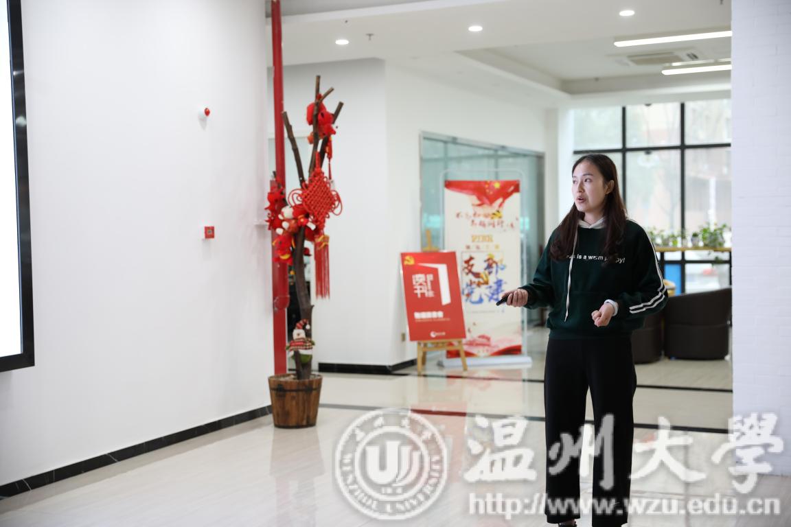 接待员在向同学们解释浙南科技城的构成部分