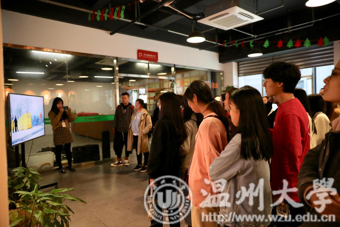 2018年12月5日,由努努影院 所主持的“创业邦·就业季”系列活动第三轮参观科技城顺利结束。这次参观活动的内容主要由参观浙南科技城的大小工作室,观看工作室的成果展示与了解科技城的构成、发展及发展规划三个方面组成。 浙南科技城东接龙湾国际机场,南至瓯江大道,位于温州城市东进的核心位置,具有承东起西,连接南北的区位价值,总占地面积为28平方公里。温州浙南科技城以“立足温州、辐射浙南、影响全省”为目标,引领温州、浙南地区的产业全面转型升级。 接待员在向同学们解释浙南科技城的构成部分 同学们认真听着接待员的解说 接待员详细介绍了科技城各个部分的工作任务,相互的合作关系以及对未来发展的好处,讲解了各个部分对于未来科技城发展的贡献值与优劣,尤其介绍了网易的产品线在科技城发展中的巨大作用和建设科技城时的强大力量。让同学们在参观前期对于科技城有了一定的了解,并拓展了自己的认知面,增加了自己创新创业方面的认知度。 讲解员介绍近几年众创空间的发展状况 讲解员介绍了由美国建立的steam教育近年来所取得的成果,向同学们展示了智能学习和智能校园的开发在未来所具有的潜力,并说明了steam教育在AR,VR,3D打印机以及无人机等“黑科技”的不断发展而为教育所带来的巨大影响。 同学们在观看工作室的研究成果 讲解员带同学们来到产品展示区,带同学们观看了近几年各工作室所发明的产品,介绍了无人机的开发与人工智能发展为人们生活带来的巨大改变。 同学们认真观看关于科技城一步步发展的视频 讲解员带领同学们到多功能大厅外的屏幕前观看关于科技城发展的音乐视频,随着视频中科技城的建立与发展,同学们也慢慢对科技城有了一定的了解。 多媒体大厅内景 共享办公室的内景 讲解员就共享办公室进行各项说明 行程过半讲解员带同学们来到了共享办公室的内部,同学们的目光被墙上贴的照片与合作机构的LOGO所吸引,而墙上以图标所描述的发展过程和各个产业链之间的关系让同学更简单的去理解,这也令办公室内的工作氛围更加和谐,不呆板,不老套。 以书的森林为主题的“云上书局” 紧接着,讲解员带着大家来到了云上书局这一以书的森林为主题的红色书局。“云”者,科技与想象力,“上”者,意识形态。云上书局以月为单位举行红色活动,致力于社会主义核心思想的传播与个人思想道德上的完善。 书局内部场景 同学们在路演大厅观看最科技城的发展之路 最后,讲解员带领大家来到了路演大厅,在这里,同学们通过视频与PPT的展示了解到了科技城的地域条件,区位要素,建设基础,发展前景等等,为同学们之前的所有的疑惑作了最后的解答。 最后的大合照 结束后,同学们表示对于这次参观流连忘返,希望自己能够学到更多在校园里很难接触到的创业知识,开拓自己的视野,丰富自己在创业方面的知识。我们相信,这些希望创业的同学们在今天的参观里已经为自己的创业之路打下了坚实的学习基础,让我们共同期待这些同学们在今后的创业生活里可以大放异彩!而后,同学们一起用合照来宣布这次的浙南科技城之行落下帷幕。