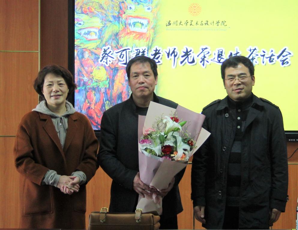 蔡可群老师在会上发表了深情的感言,首先,他对学院领导给予的肯定和赞扬表示感谢。他回顾了自己1988年毕业于温州师范学院美术系油画专业后于当年留校任教,至今三十一年的从教岁月。作为资深老教师见证和参与了学院各方面工作,几十年间从无到有、由小到大、由弱到强的全方位建设发展过程,其间积累了丰富的工作经验和颇多的感慨。他表示,在美院工作了大半生对美院感情深厚,退休后仍会为继续美院做力所能及的贡献。