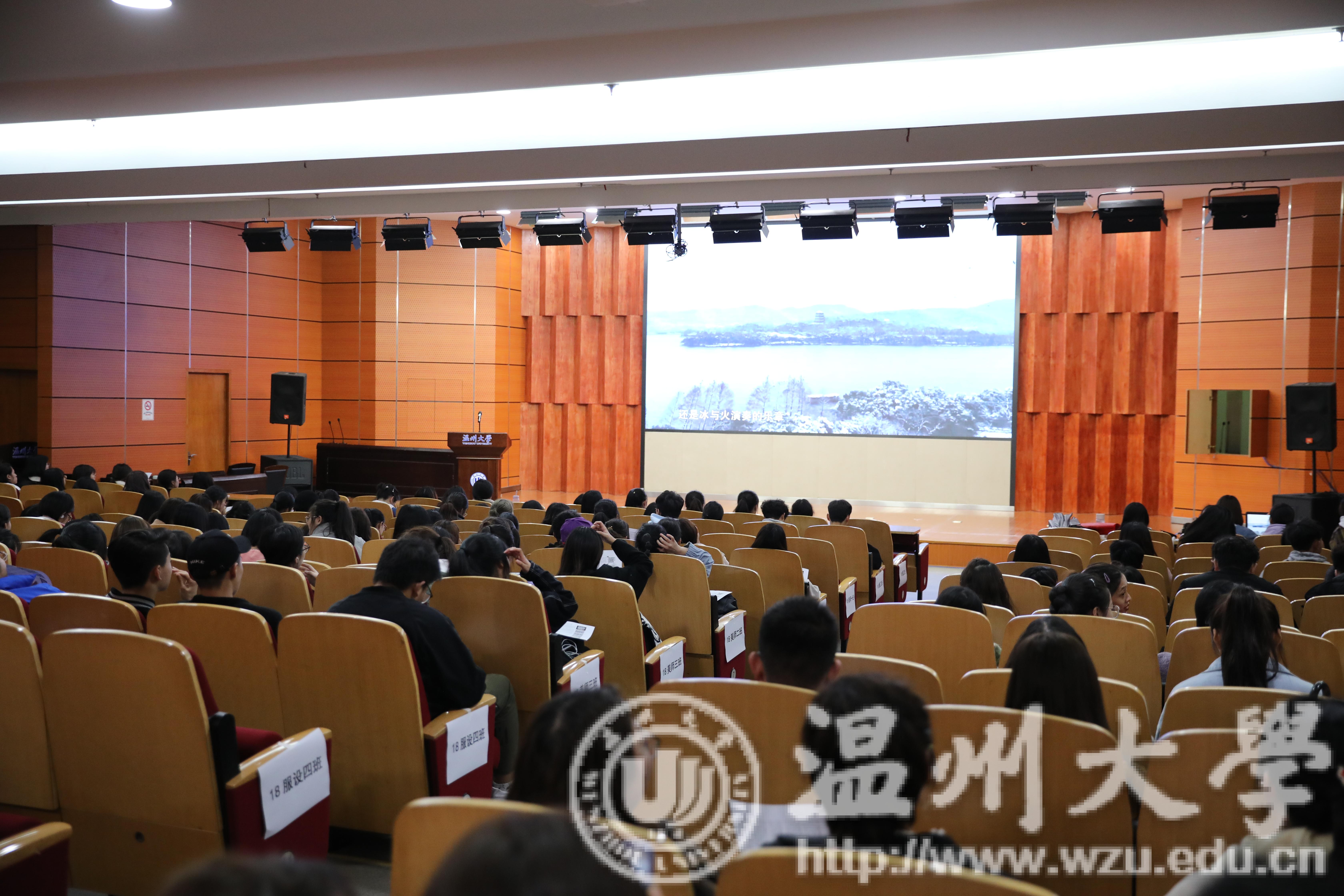 3月17日晚上,努努影院 2018-2019学年第二学期第一次形势与政策课于雁山厅开讲,美院全体18级学生参加学习。