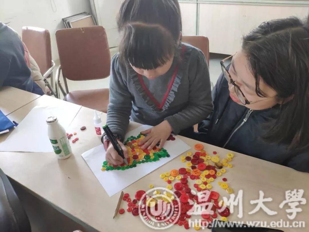 2019年3月30日,努努影院 “艺家人”青年志愿者协会在梅泉社区的“载梦小舟·梅泉支教”志愿者活动照常举行。 今天的茶山阳光明媚,小朋友们早早的就来到了社区,我们的志愿者也携带好工具在教室里等待小朋友们的出现了。本次我们支教活动的主题是“纽扣拼图制画活动”。首先,志愿者老师播放了“大头爸爸和小头儿子”动画片里关于纽扣的情节,让小朋友们对纽扣拼图有了一个大概的了解。随后在志愿者的带领下探索纽扣拼图的奇幻世界,小朋友们强烈的探索精神和求知欲让志愿者们大吃一惊。课堂的氛围就像外面风和日丽的天气一样美好,渐渐各种有趣的想法创意就出现在了之上,有的小朋友做出了大树的形状,有的小朋友则是对海底世界充满了兴趣,而有的小朋友因为爱吃冰激凌就做出了冰激凌形状的作品。小朋友们对课堂积极参与的热情使我们又度过了这周的支教活动。 我们的支教活动也在欢声笑语中走向了结束,通过本次活动,我们希望小朋友能够拓展思维,用自己天马行空的想法把它们变为可能。