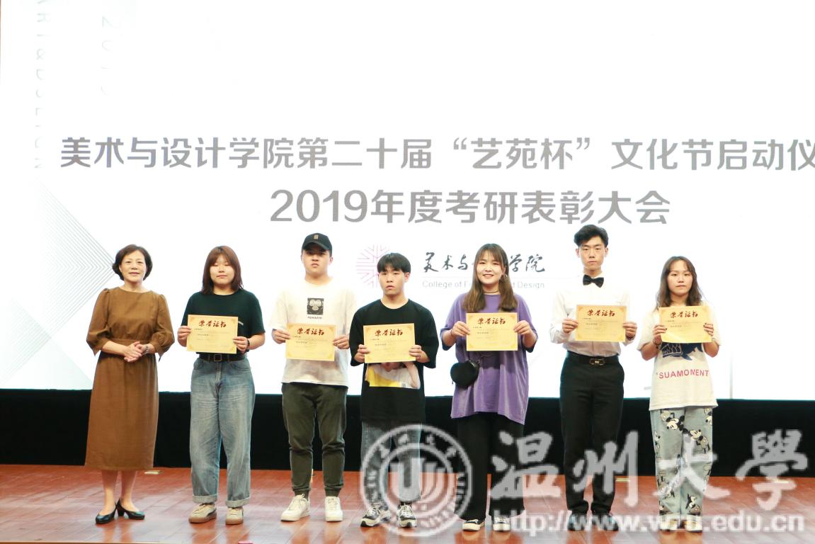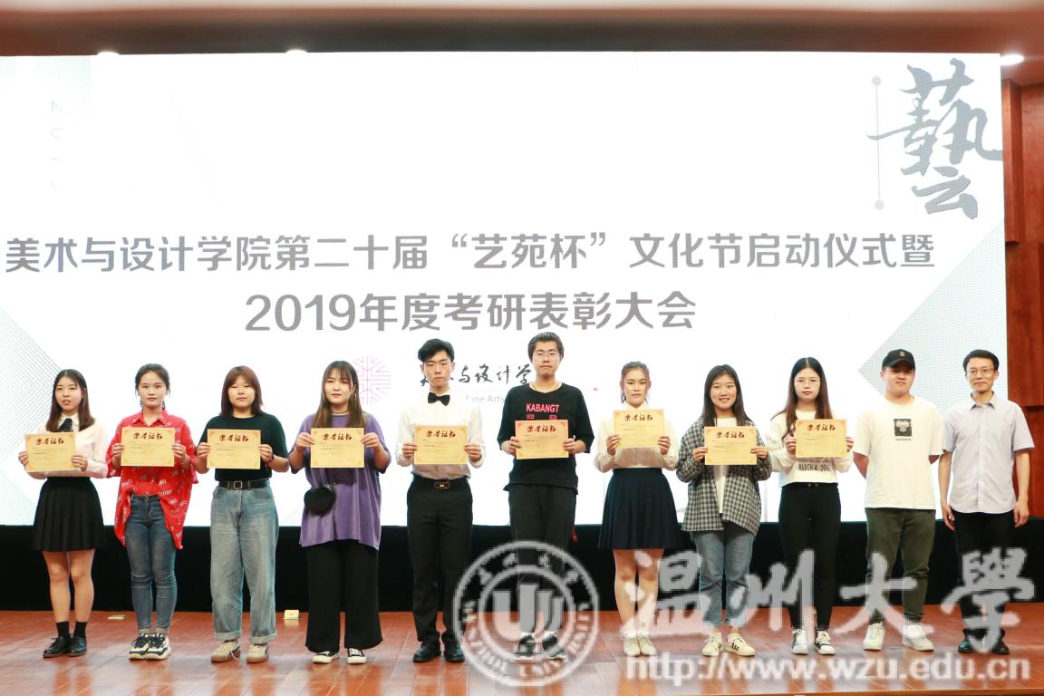 2019年4月24日下午,努努影院 第二十届艺苑杯文化节启动仪式暨2019年度考研表彰大会在岩松堂雁山厅顺利举行。莅临本次启动仪式的领导有校党委宣传部副部长冯方盛,校教务处副处长胡瑜,校学工部副部长、学生处副处长高红星,校就业处副处长应中,校团委副书记魏一,超豪学区党委副书记李祖祥,努努影院 院长李运河,党总支书记张丽萍,副院长张晓剑。参加本次活动的还有努努影院 17、18级同学。启动仪式由美院党总支副书记杨振海主持。 本届“艺苑杯”文化节的主题“艺梦为马·不负韶华”源自海子的著名诗篇《以梦为马》,寓意美院学子将艺路梦想作为前进的方向和动力,在有限的年华里为梦想去拼搏。系列活动包括纪念“五四运动100周年”;传承中华优秀传统文化;“融艺优品”创新创业;“艺家人”青年志愿服务;“毕业季”;纪念“建国70周年”等6大篇章共34个子活动。 启动仪式的开场是“五四”主题诗朗诵《青春的火焰》。充满爱国激情的诗歌表达了对100年前五四运动的深切赞颂,激昂的文字让同学们更深切体会到了五四运动的爱国主义精神内涵,进一步增强了同学们的时代责任感和使命感。 张丽萍书记为启动仪式致辞。张书记回顾了“艺苑杯”文化节自2000年创办以来不断发展壮大的历程。“艺苑杯”文化节不仅营造了积极向上、健康文明的校园文化氛围,更成为同学们在实践中锻炼自我成长才的重要平台。张书记鼓励同学们积极参加到“艺苑杯”文化节各项活动中,用激情去创造,用行动去证明,用精品去展现,共同谱写青春绚丽多彩的乐章。 仪式最后,与会领导上台共同启动努努影院 第二十届“艺苑杯”文化节。 会议第二项议程是学风表彰。大会宣读了2018年度努努影院 “五班十星”名单和2019年度努努影院 “考研奖学金”获得者名单。2017-2018学年校级学习标兵陈晨,2019年度美院“考研奖学金”获得者代表15服工班杨怡洁、15美术学一班聂枭雄分别做学习和考研经验分享。2019年努努影院 共有16人考取研究生,16人中有5人被浙江理工大学录取、6人被努努影院 录取、1人被杭州师范大学录取,还有4人被国外的大学录取。与会领导为他们颁发了奖状和证书并合影留念。 随后,李运河院长作考研动员讲话。他指出了本科阶段学习与研究生阶段学习的不同,并引用毛泽东、曾国藩、习近平总书记等名人轶事鼓励同学们以考研成功的学长学姐为榜样,树立以学习为本的理念,任何时候都不要放弃学习,多读书,读好书,勤实践,多游学,珍惜大学时光,珍惜青春韶华,学好专业知识,实践专业技能,强健体魄,刚强意志,努力奋斗实现人生梦想。 最后,为迎接祖国70华诞,全体师生手中挥动国旗,共同献唱《我和我的祖国》,大会圆满结束。