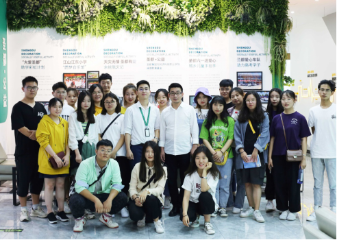 在圣都公司进行见习的过程中,首先映入同学们眼中的便是公司内部简约大方的设计,在布满绿植的墙面上写着“每一件事,都事关于家;每一个细节,都事关于家人;每一个努力,都为了更好。”此处可见公司内部做事认真严谨的态度及积极向上的氛围。在讲解及慢慢深入过程中,同学们了解了更多关于室内装修的各类材料,装修流程和本专业当下的发展情景以及同学们今后的应对方式,同学们初识了公司内部的经营方式,许许多多繁复的装修工艺,跨专业知识在本专业中的应用,而给更多传达给同学们的则是如何将一门工艺做到更好,甚至最好,如何呈现给客户既美观大方的设计及坚实可靠的施工材料。美则美已,如果无法实现美观与耐用度的统一,再好的设计也是徒劳。这种极为负责任的态度深深震撼着同学们的内心,一棵幼苗的茁壮成长往往一开始就受到良好的灌溉。