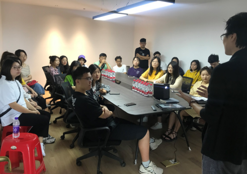 身为合展建设公司创始人的应卫军,是同学们的学长,为人十分亲切,在各位同学就座后耐心讲起公司制作的各类室内设计案例,从酒店,酒吧,KTV等小规模定制设计到大规模的楼房应用大厅,售楼处样板房及城市书屋设计。为解答同学们的疑惑,他从“一个设计是如何形成的”导入主题,分享亲身经历,告诉同学们自主学习的重要性且应抱着怀疑的态度去学习。期间,他耐心回答同学们的疑惑,用最朴实的语言提出解决方法。在公司内虽然只有短短的见习时间,但经过专业人士的点拨,同学们豁然开朗,更清楚了下一步应该做什么,可谓收获良多。